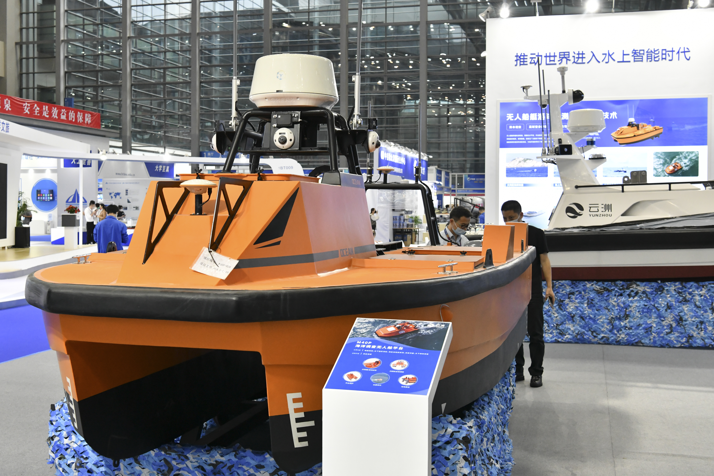 2022年11月24日,观众在海博会现场了解云洲无人船。新华社记者 梁旭 摄