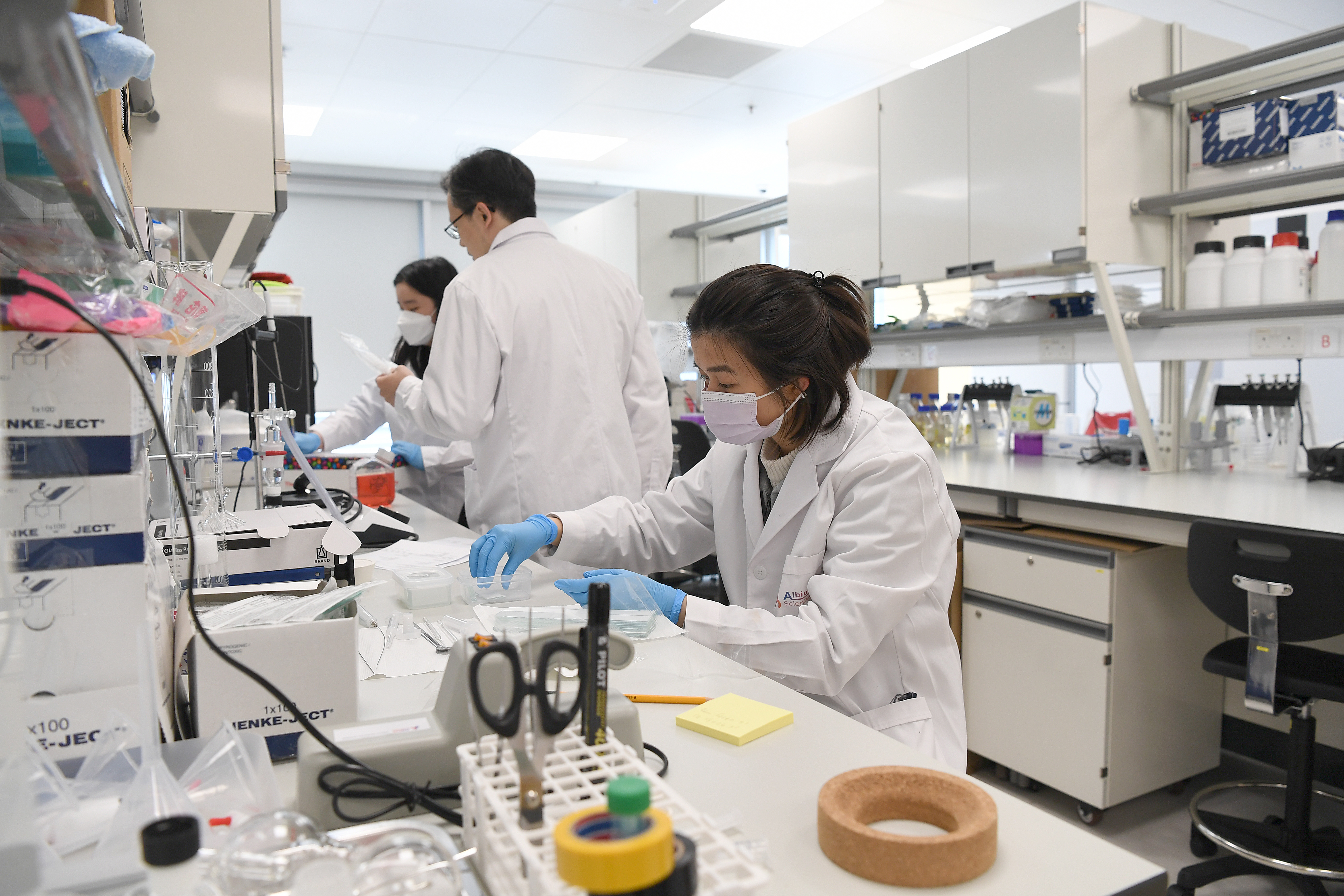 2023年3月3日,工作人员在香港科学园生物医药科技培育计划 (Incu-Bio) 共享实验室工作。新华社记者 陈铎 摄