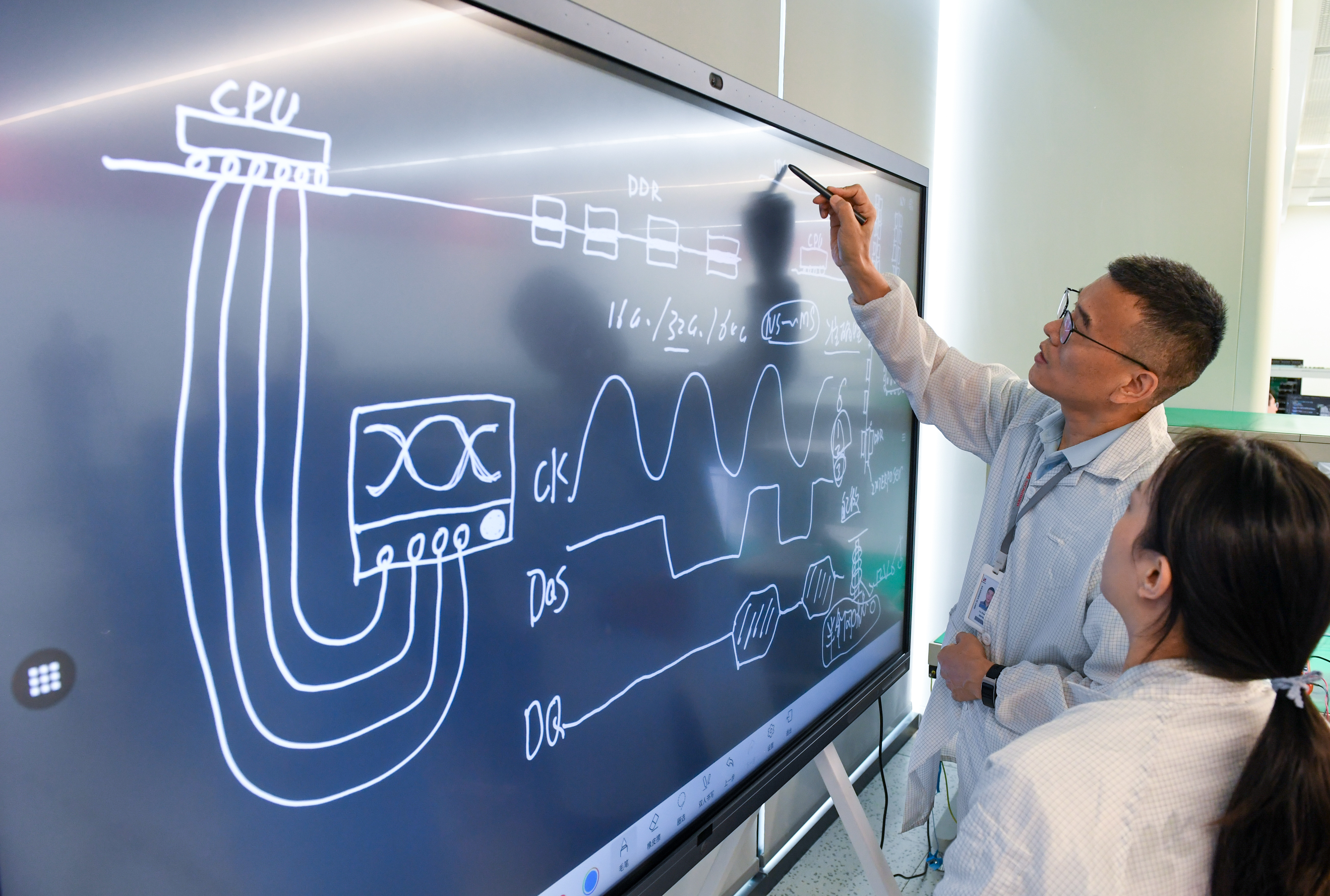 2025年10月13日,在深圳市万里眼技术有限公司,实验室人员分析高速信号时序关系。新华社记者 毛思倩 摄