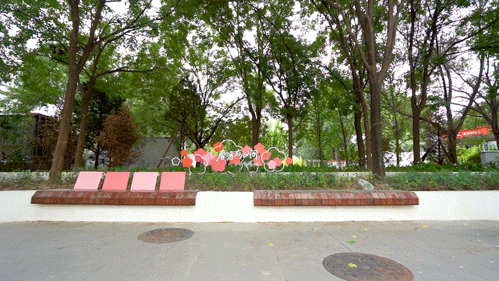 项目还根据人员活动习惯,调整林木,增加林荫步道、休憩设施、月季走廊、景观小品等,借景朝阳公园内北小湖,实现道路、公园、湖景融会一体的视觉景观效果。