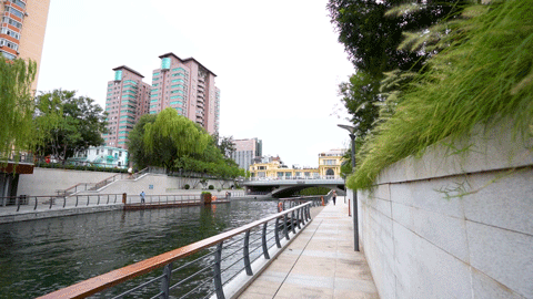 走在如今的朝阳公园路,沿线设置有“青绿小屋”等景观小品,吸引不少市民前来打卡。从朝阳公园西2门木栈道入口处,自南向北沿着木栈道行走,移步换景,令人心旷神怡。