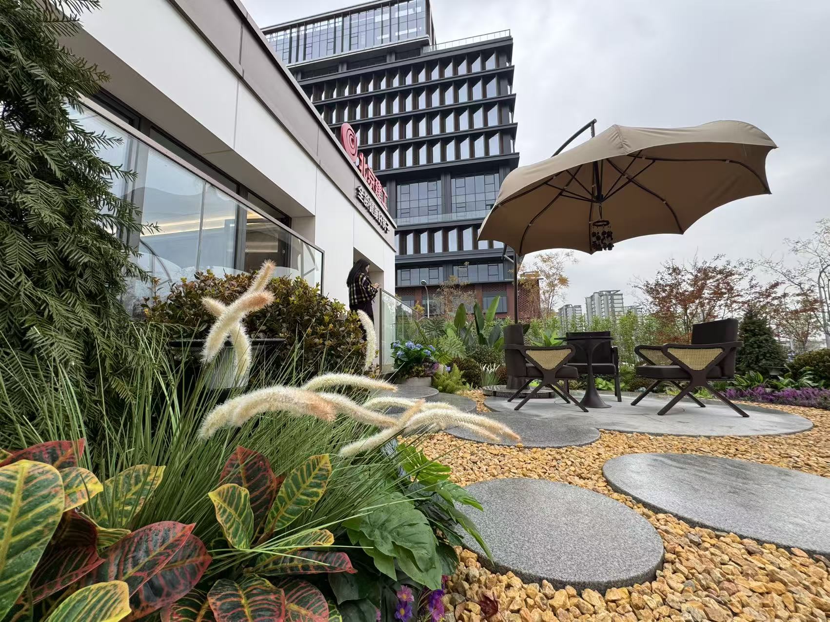 室外,北京建工样板间外的“疗愈花园”同样引人驻足。潺潺喷泉、摇曳风铃与错落绿植共同构成一个宁静角落。工作人员表示,这片园林不仅美观,还能降噪20至30分贝、调节空气湿度,“我们希望能为忙碌的都市人营造一个让生活‘慢下来’的空间。”