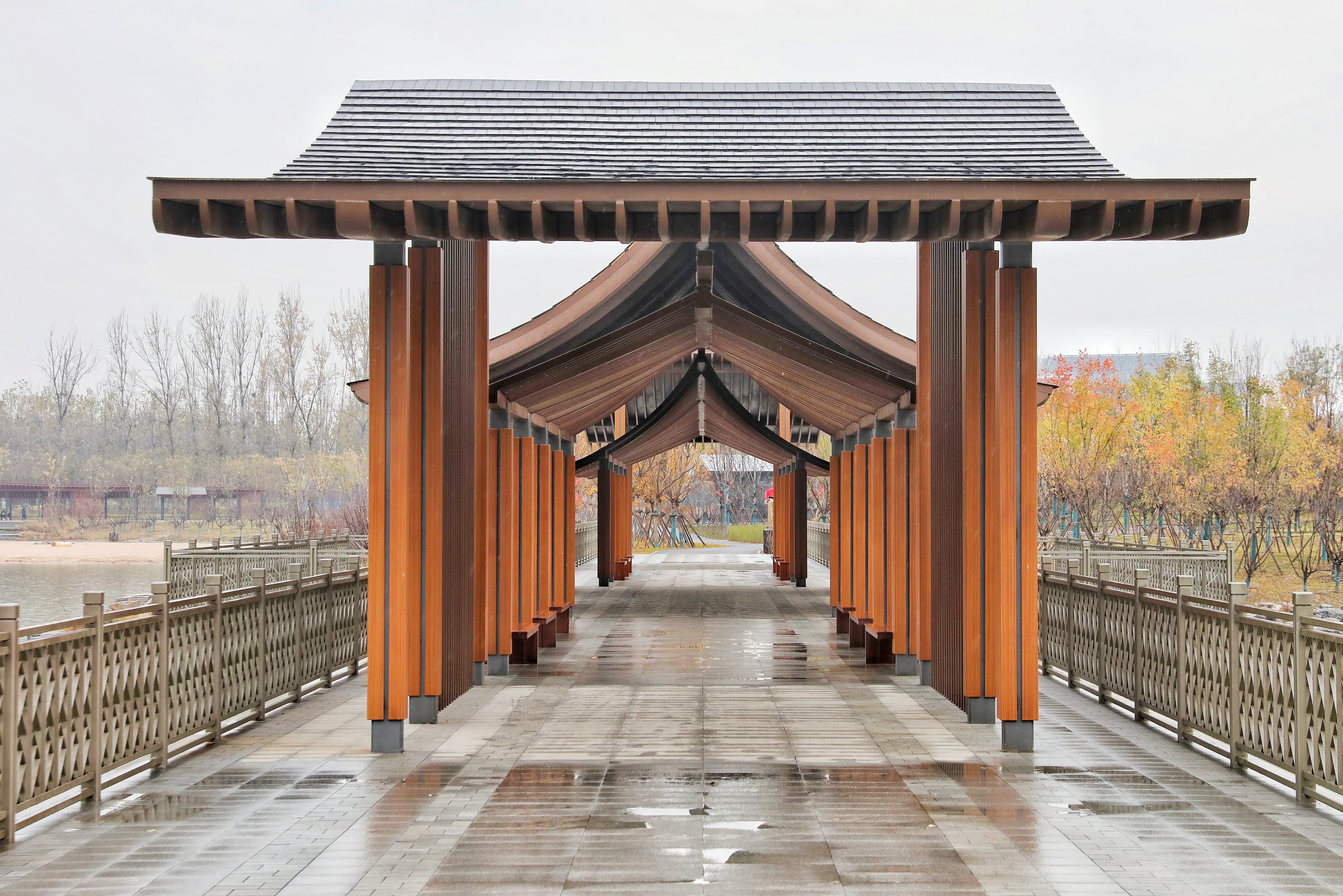 立冬的雨,裹着凉意在风里打转,本以为该是万物敛藏的清冷,没想到钻进玉河湿地公园,却撞进了一整个“舍不得退场”的秋。
