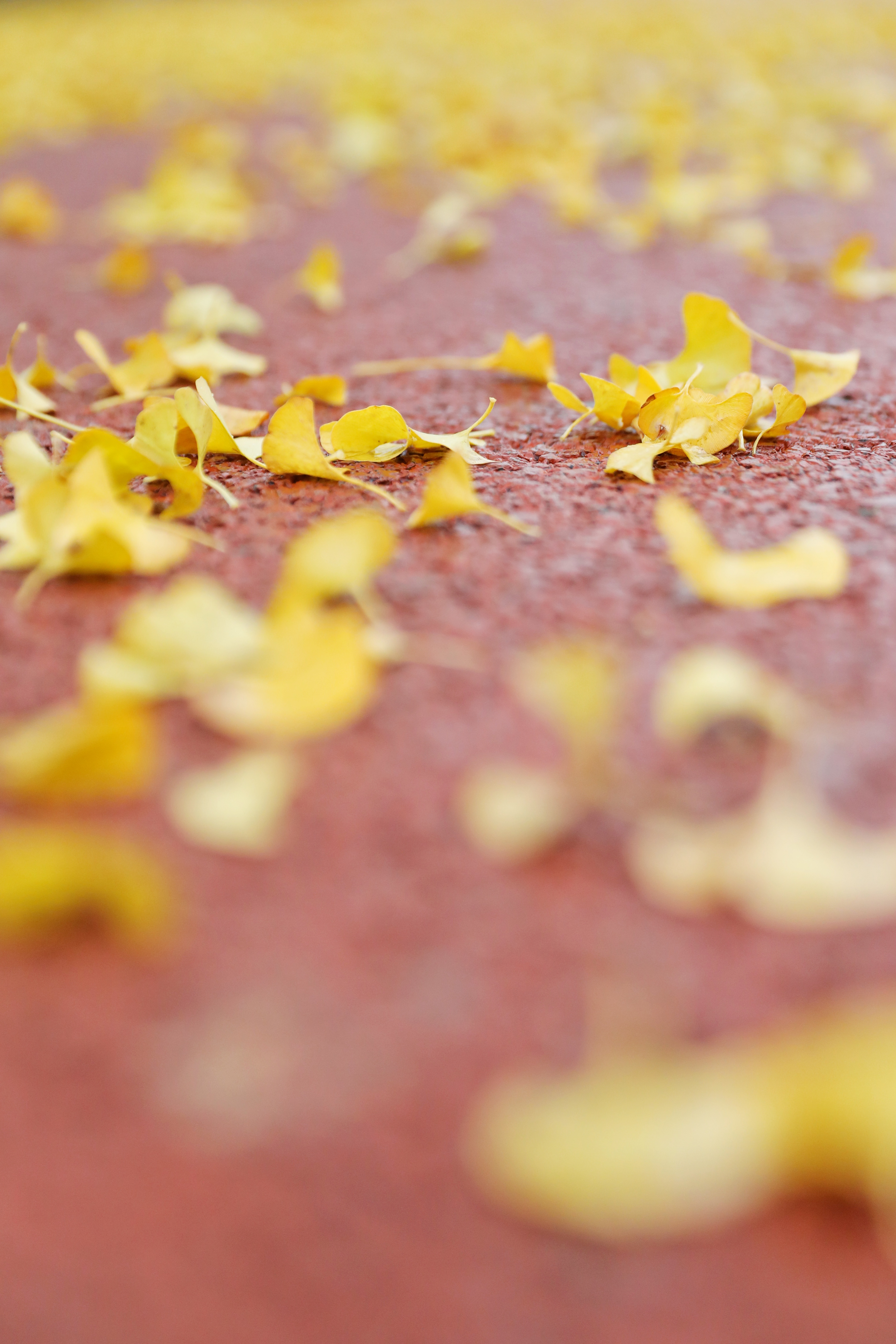 远处的银杏落了半树金,那边的柳还攥着最后点绿,连芦苇都顶着蓬松的穗子,在雨里轻轻晃。低头是花瓣粘在鞋尖,抬头是云压得低低的,把整个公园晕成了莫兰迪调的油画。