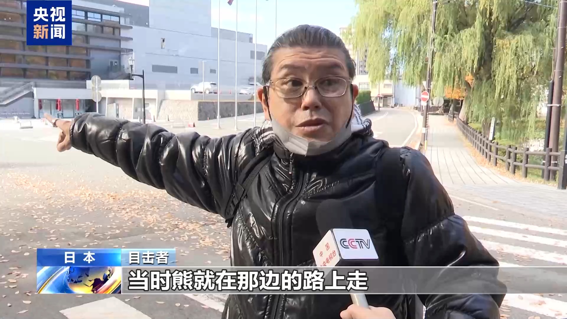 目击者:当时熊就在那边的路上走,现在秋田县已经全都是熊了 。一只小熊差不多像一只大狗一样大。