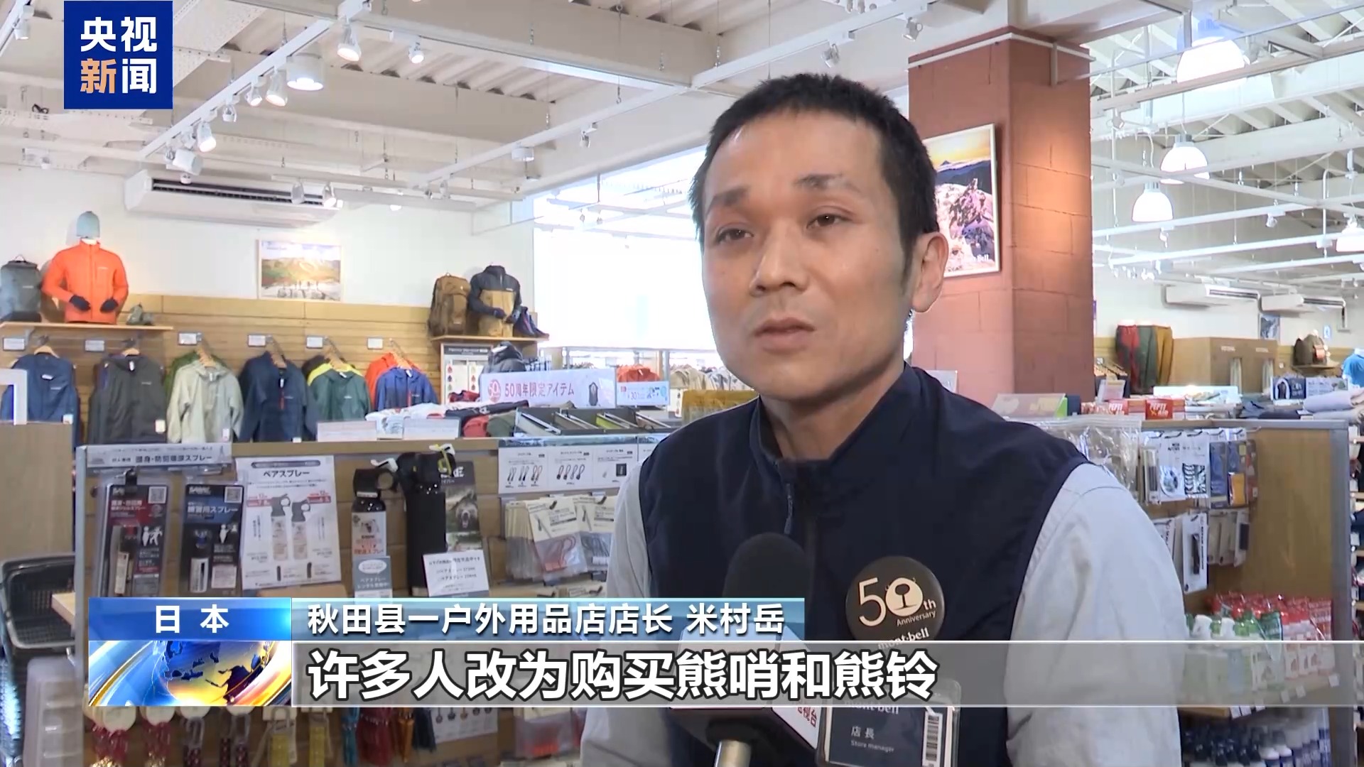 秋田县一户外用品店店长 米村岳:由于驱熊喷雾已经售罄,许多人改为购买熊哨和熊铃。
