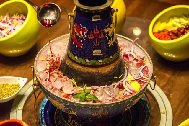 古关火锅城的特色火锅——冰煮羊火锅选用景泰蓝铜锅装冰块,涮的是产自内蒙古锡林郭勒盟东部的乌珠穆沁羊。当老北京景泰蓝铜锅遇上塞外精选冰煮羊肉,当天南海北的游客汇聚在曾经的军事要塞吃火锅,不仅让味蕾在香醇的羊肉羊汤中得以治愈,也有了满满的仪式感。