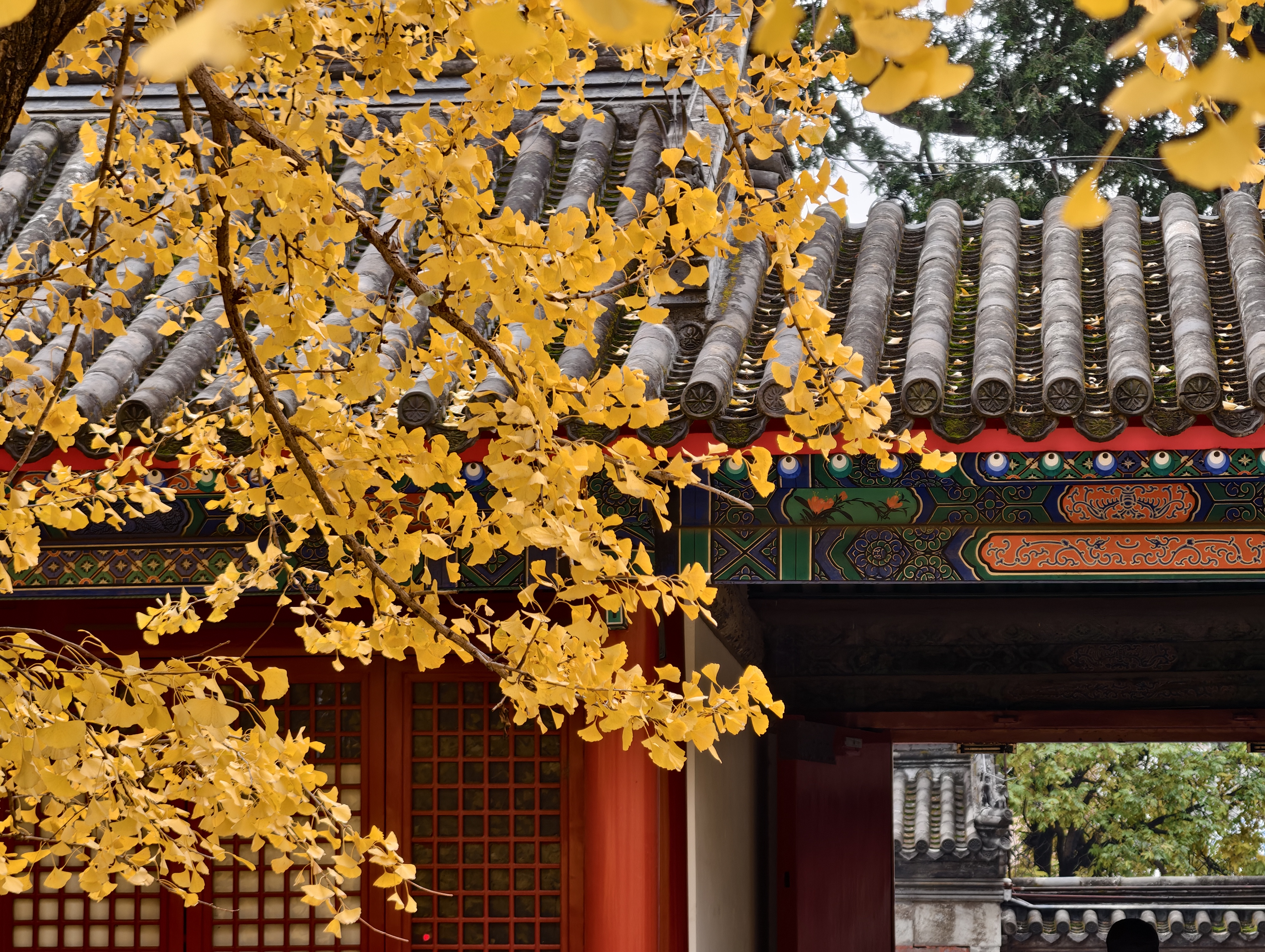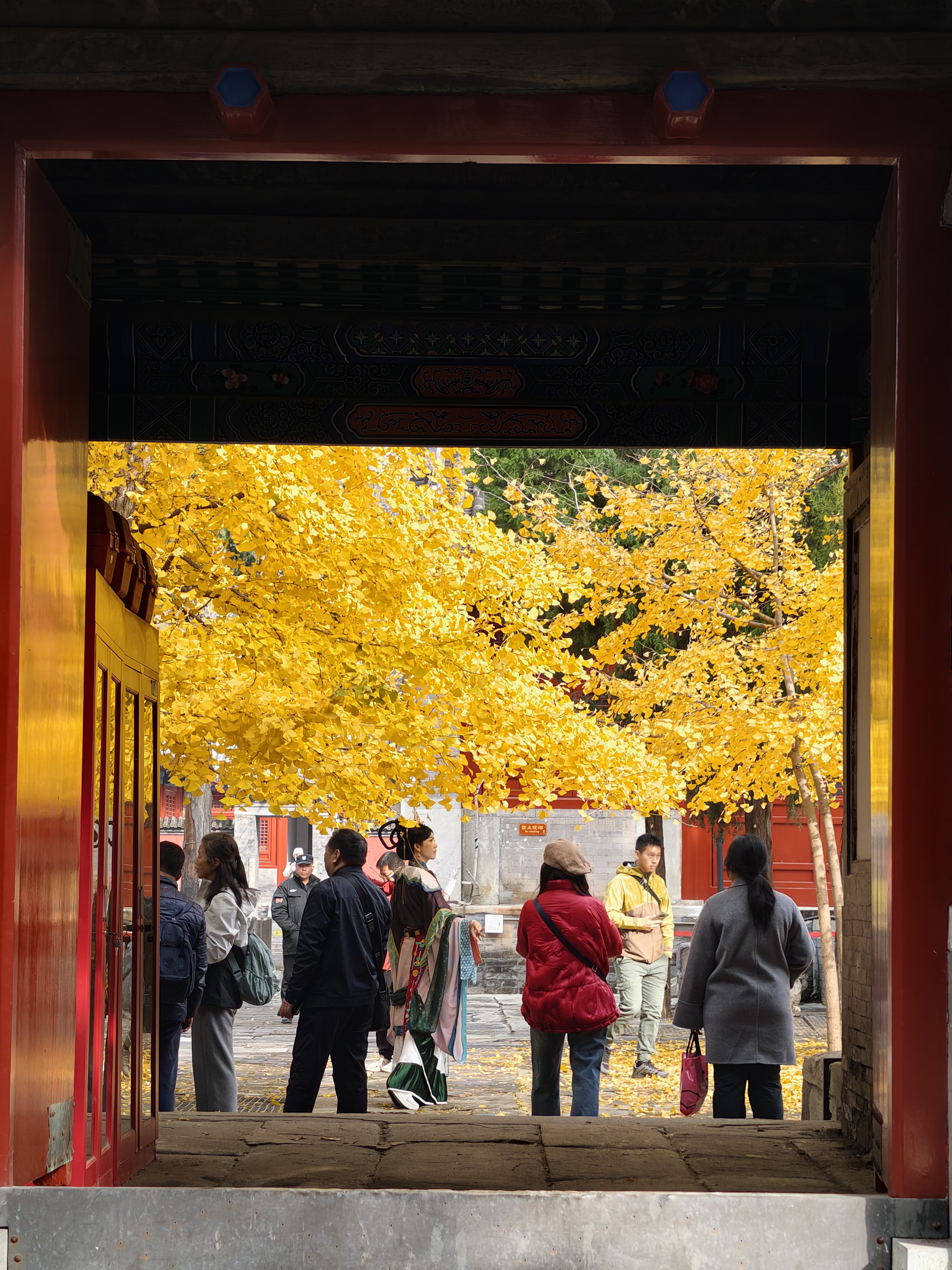 雨后初晴,天空澄澈如洗。承恩寺内,金黄的银杏叶铺满地面,恰似满地黄金甲。古老的建筑在银杏的映衬下更显庄重古朴,二者交相辉映,构成绝美画卷。游人被此景吸引,纷纷慕名而来,在此拍照打卡,留下美好回忆。