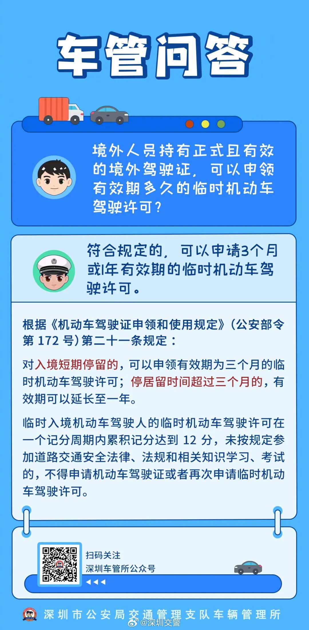 车管问答丨持境外驾驶证,可申领有效期多久的临时驾驶许可?