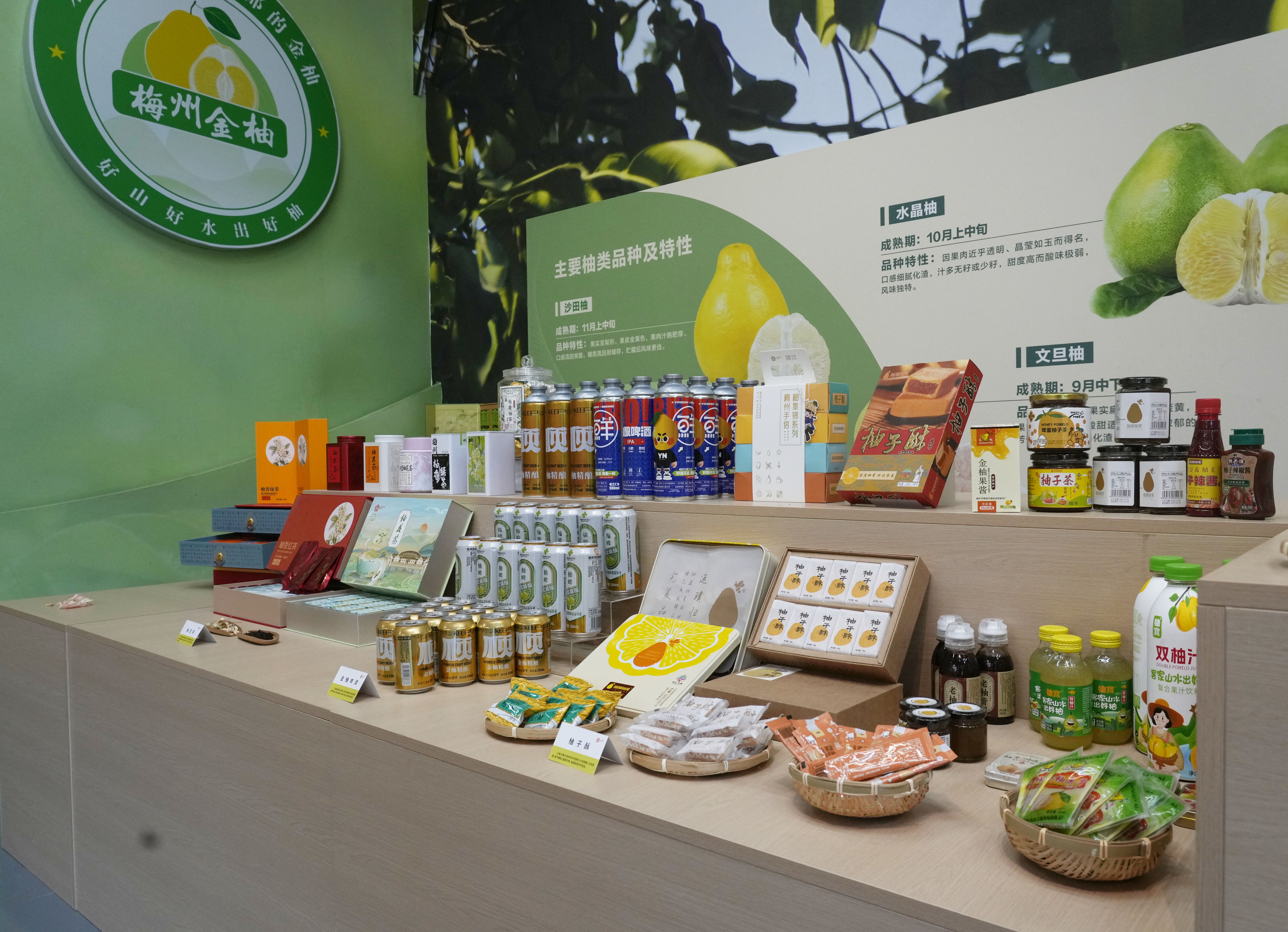 2025年11月7日在梅州南福金柚种植基地拍摄的金柚及相关产品。