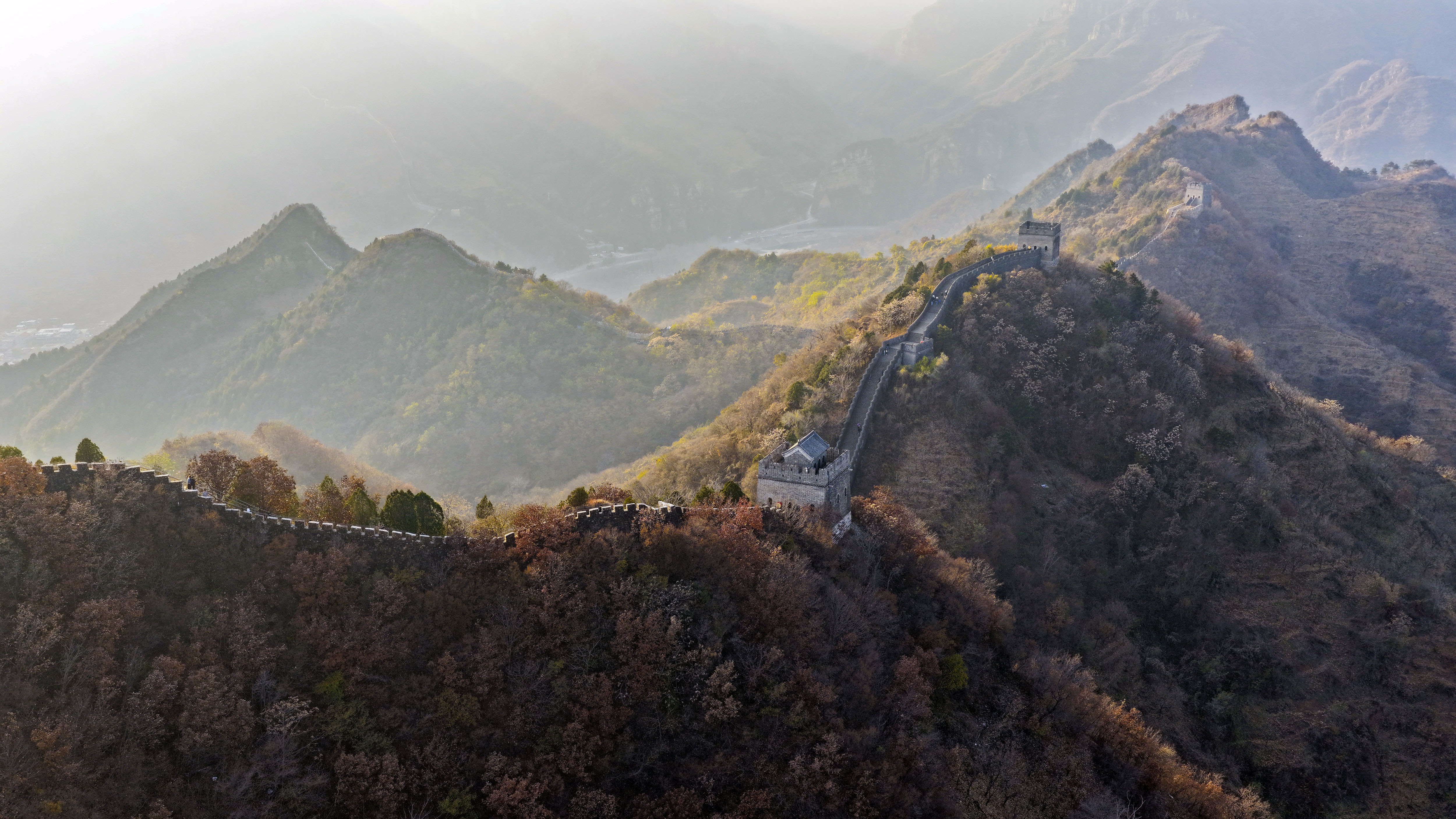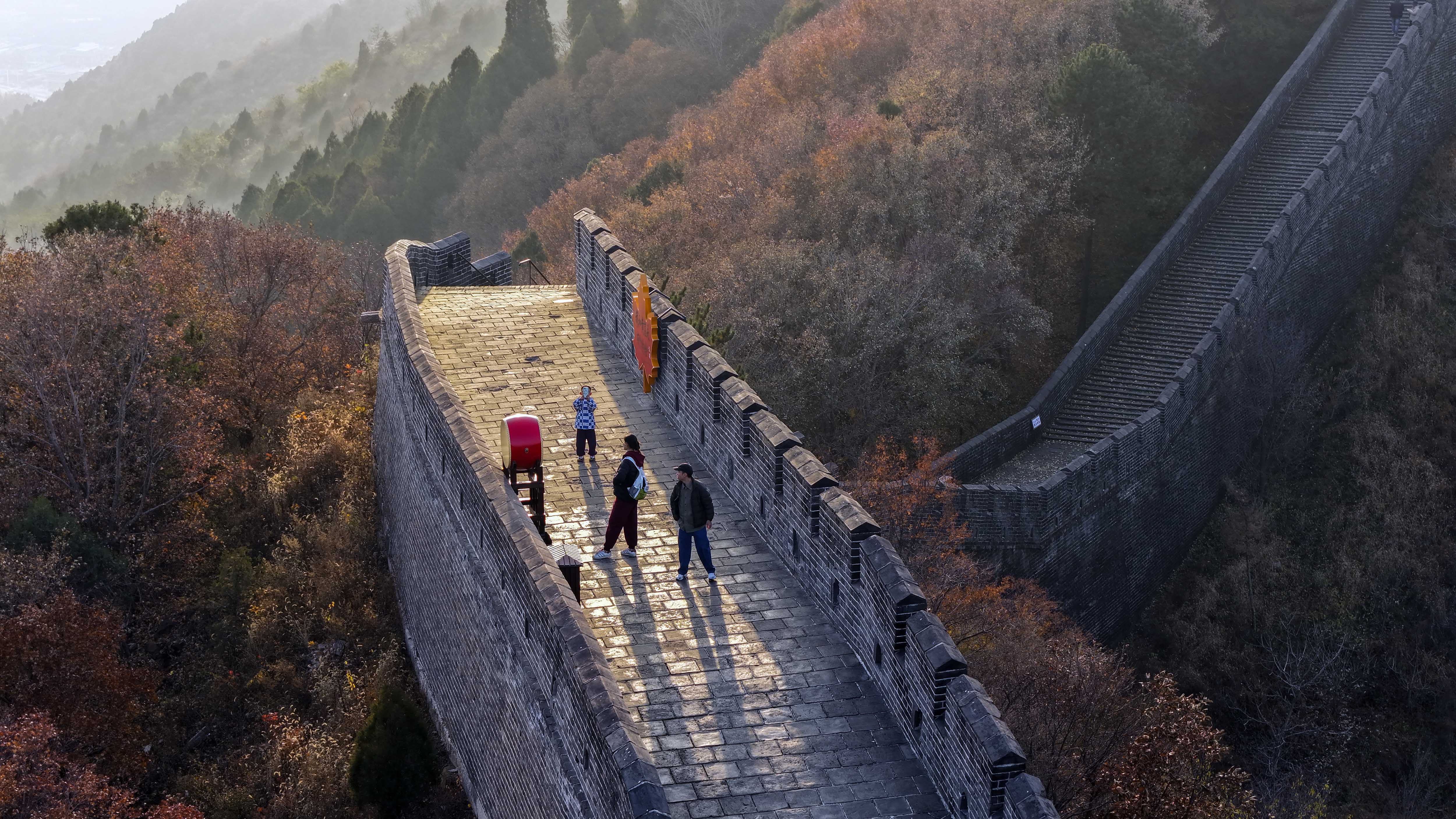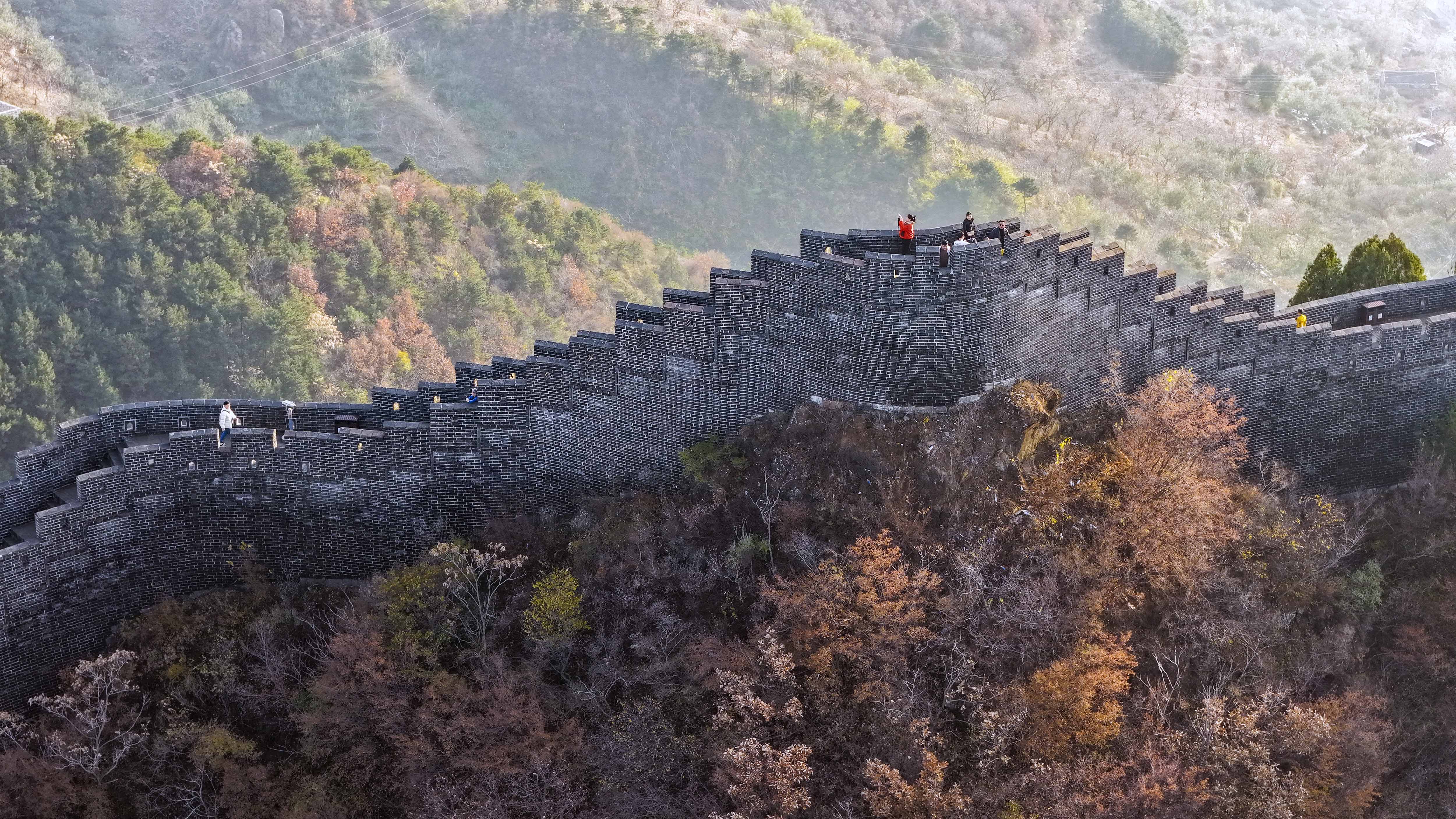 11月8日,位于河北省承德市兴隆县与天津市蓟州区交界处的黄崖关长城附近,色彩斑斓,秋韵犹存,美景如画。