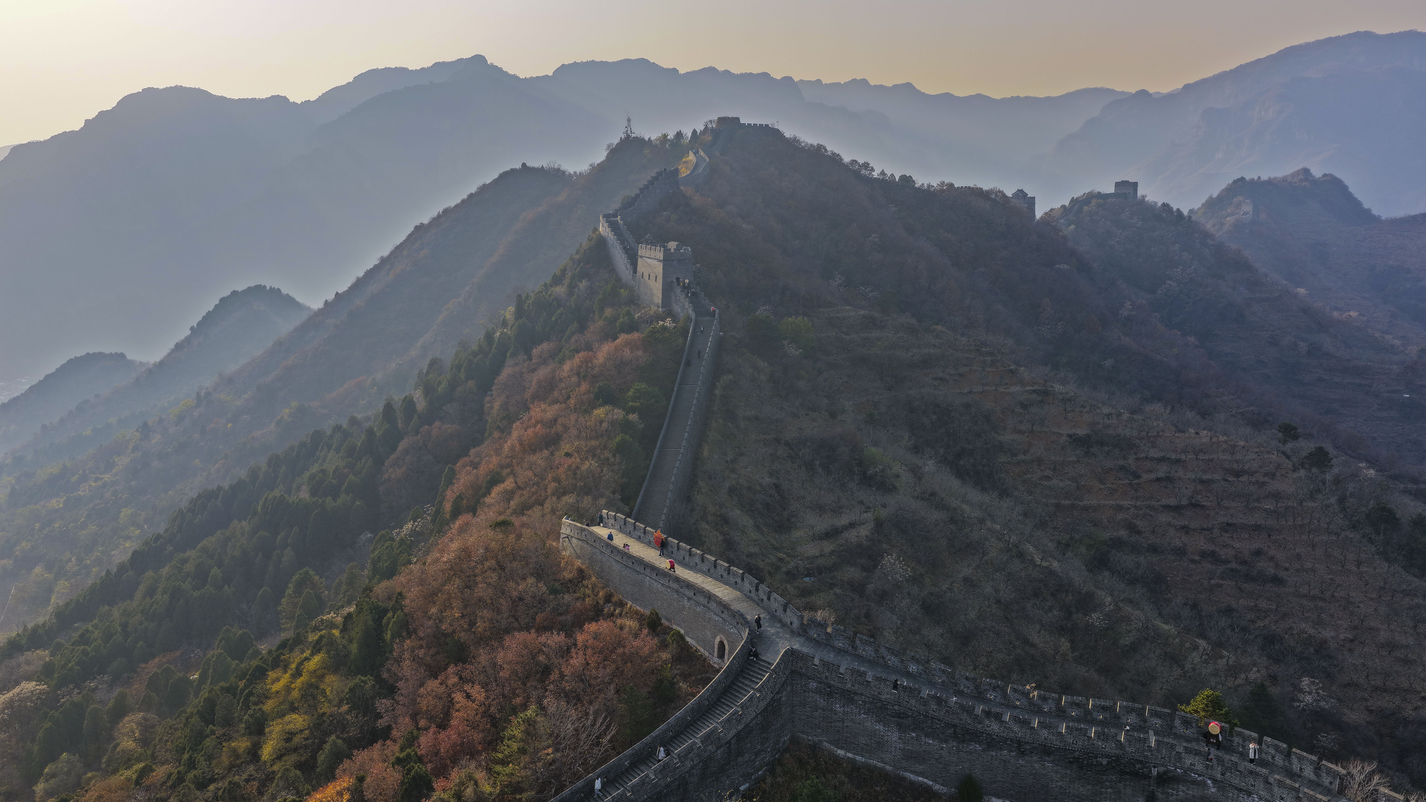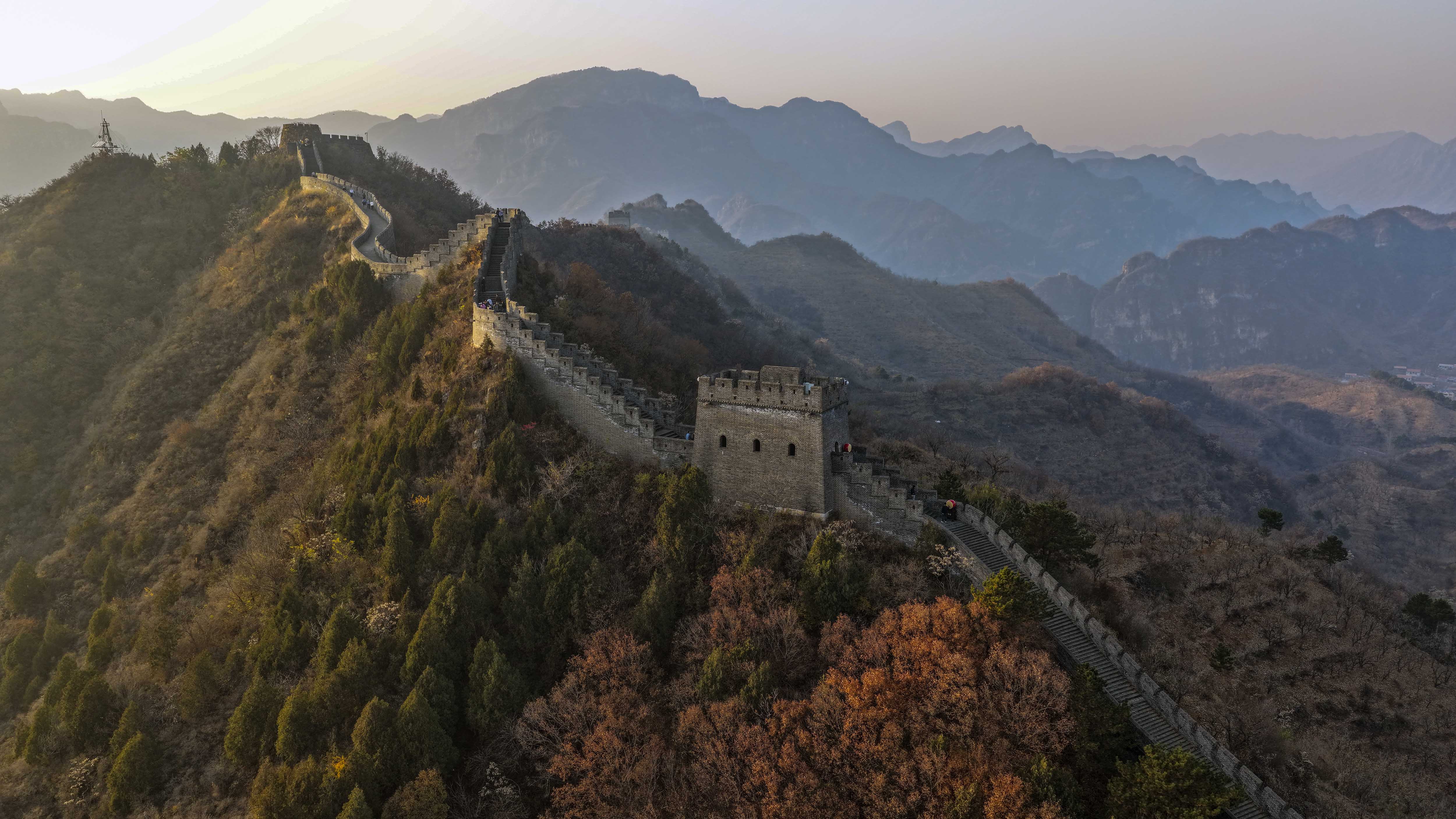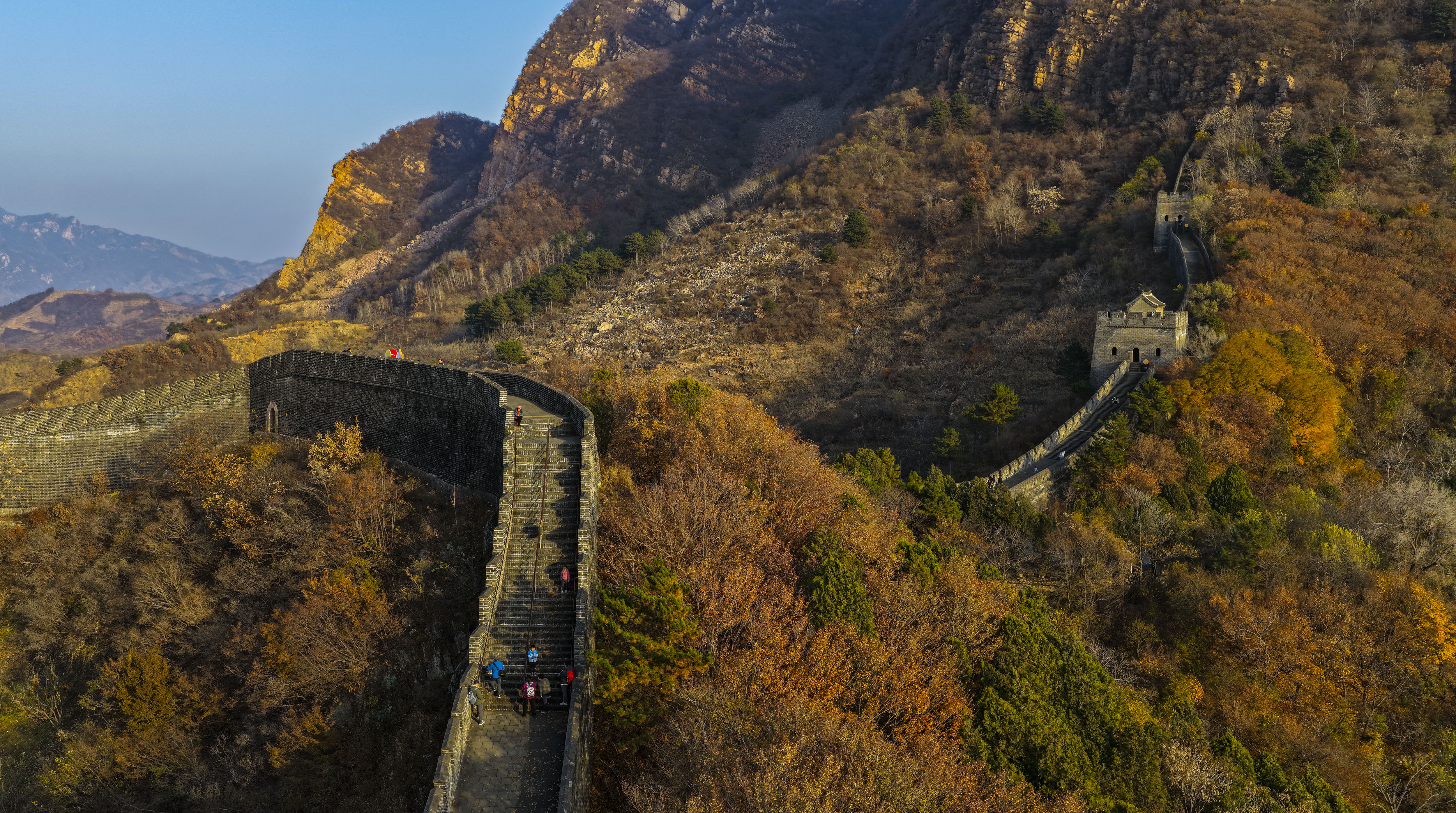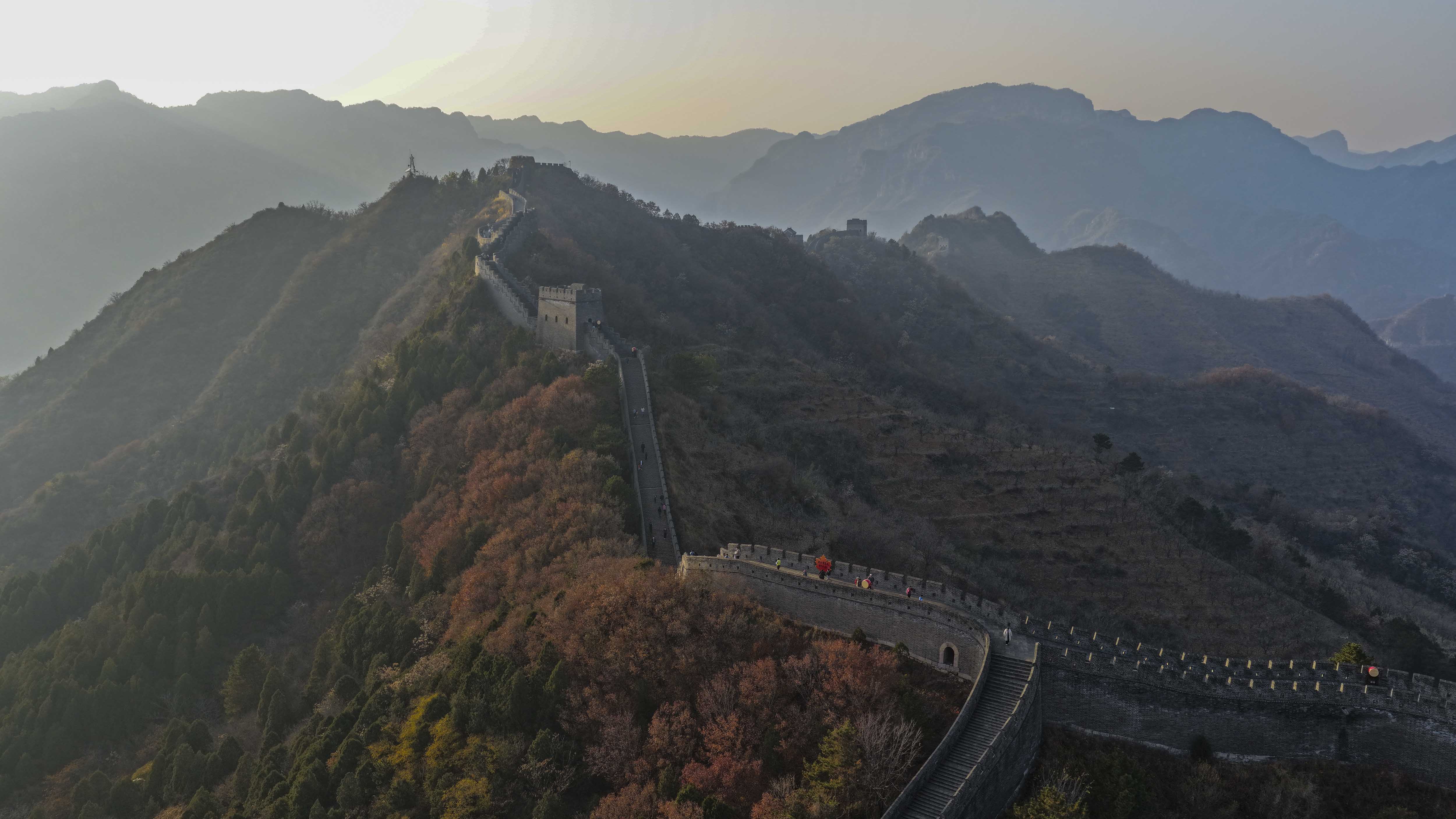 11月8日,位于河北省承德市兴隆县与天津市蓟州区交界处的黄崖关长城附近,色彩斑斓,秋韵犹存,美景如画。