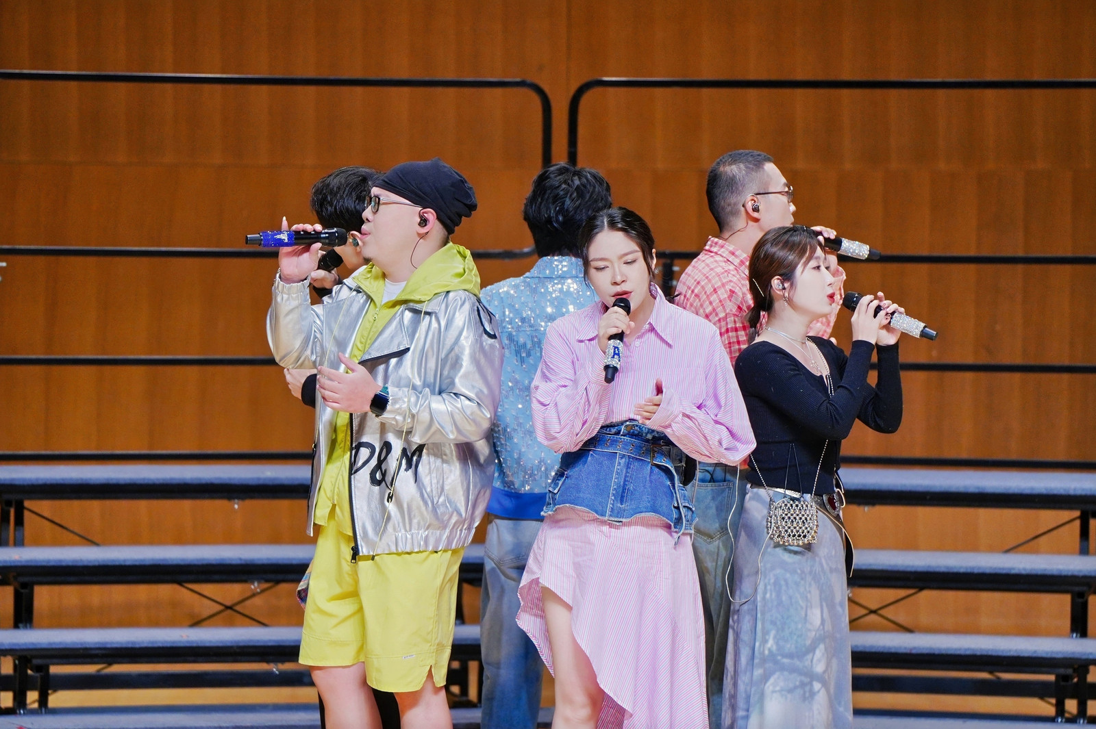 随后,三支网红阿卡贝拉无伴奏合唱乐团登场。醒耳人声乐团带来了《好想爱这个世界啊》《蜃楼》《回到拉萨》三首作品,细腻演绎赢得台下阵阵掌声。RESOUND理想人声献上了《广府情》《饿狼传说》《离开地球表面》三首歌曲,其中《广府情》以粤语吟唱展现了地域文化与现代人声的创新融合。匹诺曹人声乐团则以《Mojito》《马灯调》《国漫进化论》活力登场,90后成员的默契和声与全人声乐器模拟,尽显青春灵动。