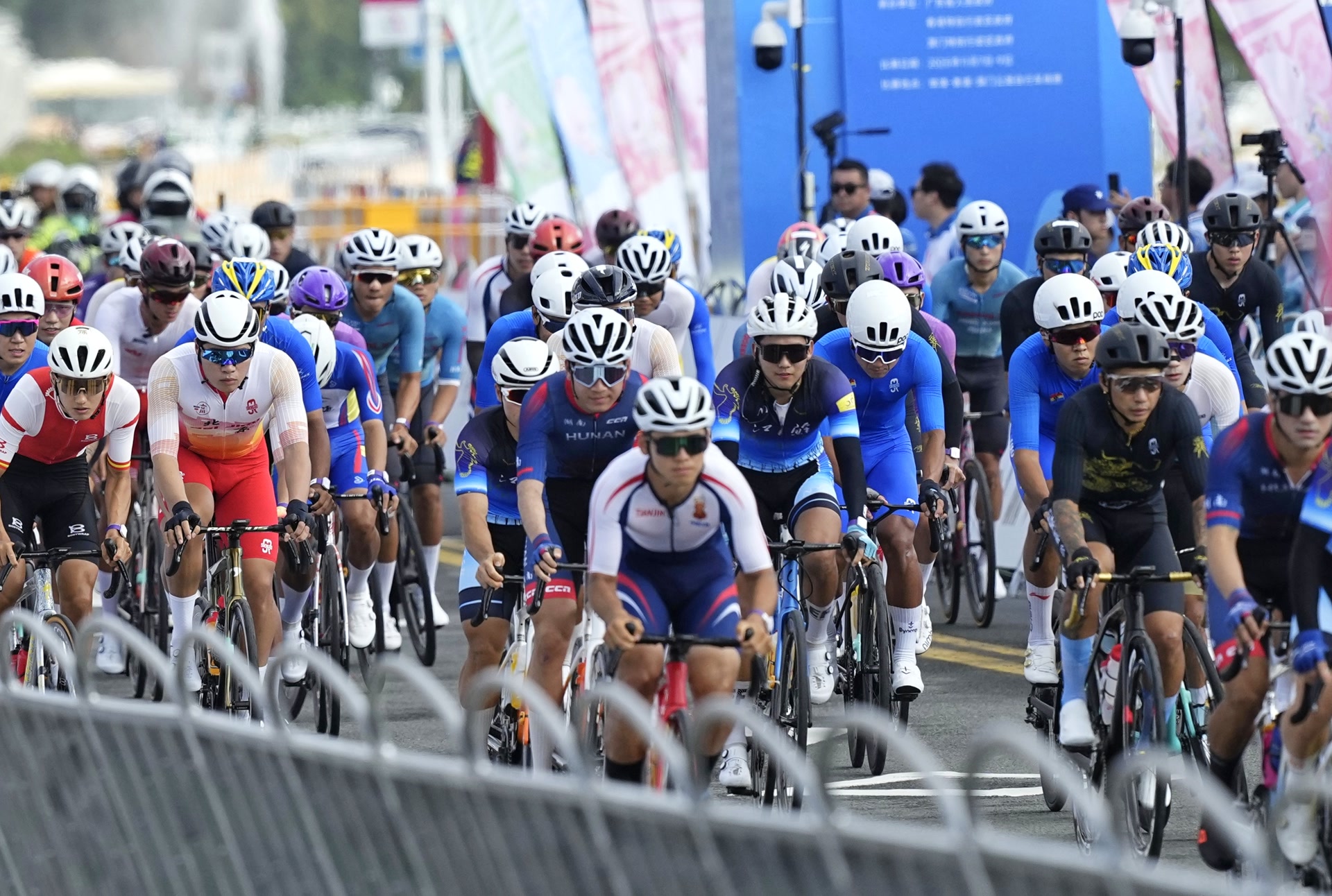 公路自行车男子个人赛线路全长231.8公里,其中香港段55.8公里、澳门段13.5公里、珠海段117.7公里、横琴段44.8公里,是十五运会唯一串联粤港澳三地的赛事。昨天上午9时,来自23支队伍的100余名运动员从珠海博物馆出发,经港珠澳大桥进入澳门,再由大桥前往香港,途经香港迪士尼乐园后返回,再次经港珠澳大桥到横琴,最后回到珠海情侣路。这场艰苦的比赛竞争激烈,冲刺阶段51名选手集体冲线,官方成绩均为5小时17分05秒。最终通过冲线位置判定,刘志城稍稍领先薛超华夺冠。