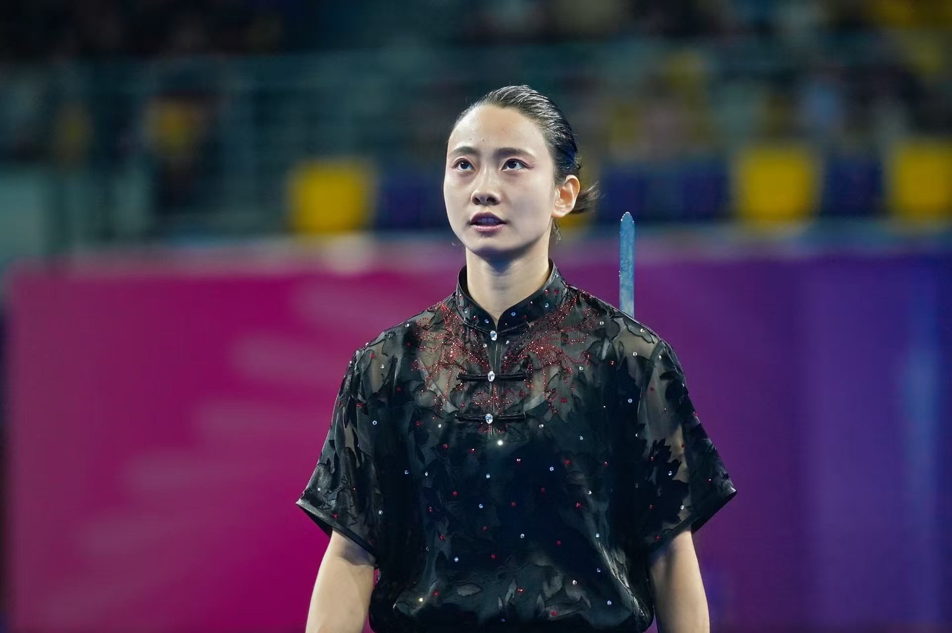 在长拳比赛中,魏爱轩第一个出场,以一套流畅舒展的套路获得9.790分,位列第三,为整个比赛开了个好头。进入剑术比赛,魏爱轩延续良好势头,身法与剑法协调合一,以9.786分再次排名第三。在最后的枪术比赛中,魏爱轩气定神凝,一套枪术套路刚柔并济,招招精准,力贯枪尖,无论是高难度的腾空动作,还是细腻的技法处理都近乎完美,赢得了裁判和现场观众的一致认可,最终得到位列枪术第三的9.790分。三项相加,她共计29.366分,为北京武术队取得一枚奖牌。