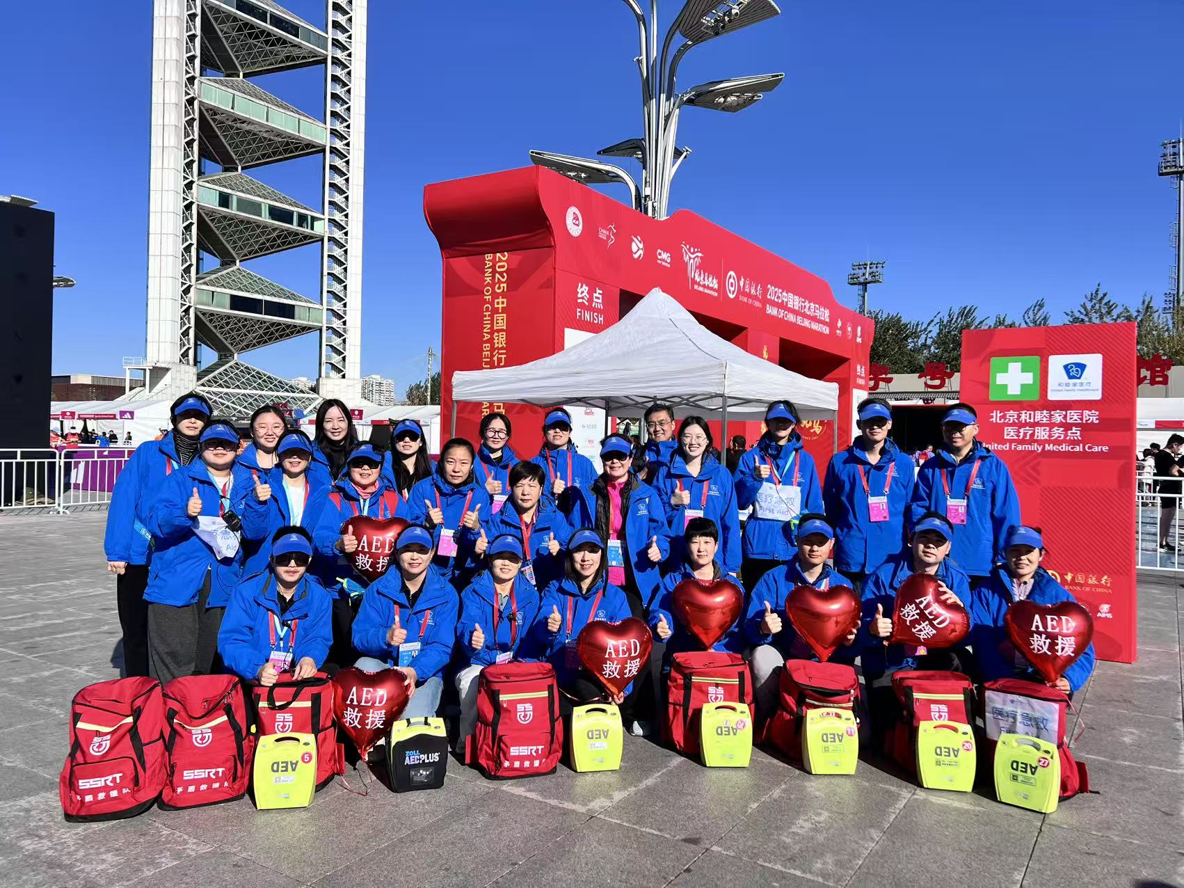 本届赛事,北京和睦家医院在26个固定医疗站,投入近200名医护人员,涵盖骨科、外科、急诊等多个科室。与此同时,由74名专业医护组成的骑行AED救援队与终点徒步AED小组全程待命,以及近30名医师跑者分散在选手当中,共同构建“固定+移动”的动态响应网络。