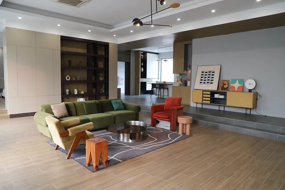 目前,公司占地面积40余亩,建筑面积超8000平方米。整体划分为四大区域:近4000平方米摄影棚、2000平方米实景棚、1700平方米办公生活区、300平方米服务配套区域。其中,3个标准摄影棚建筑面积分别为1500平方米、1200平方米、1000平方米,可满足客户不同场景搭建拍摄需求;8个实景棚涵盖家居、办公、工业风、美式集装箱等多元风格,为剧组提供多向选择,实现“一站式”成片拍摄。
