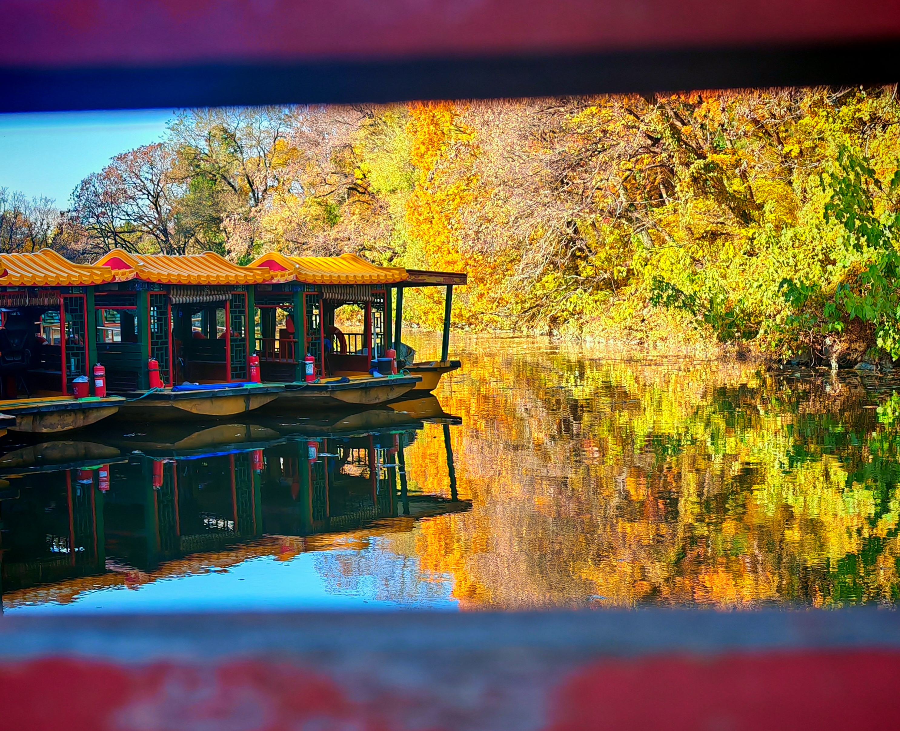 11月9日上午,北京颐和园后湖,湖面如练,倒映着远山的黛色与近岸的斑斓树影。一阵微风掠过湖面,泛起层层细腻的涟漪,仿佛在古朴的亭台楼阁与苍翠的枫林间勾勒出一幅流动的山水画卷。