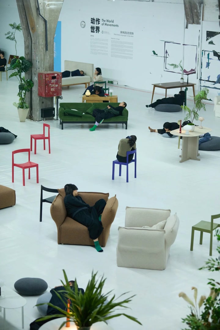 “动作世界”的开放性令其更像是一场“流动的盛宴”,它并非一个已经完成的作品,而是一个开放的框架,它的内容也由持续涌入的公众共同创造和书写。每天下午两点到晚八点,六个小时不间断的动态持续,熙攘的人群来来往往,让艺术空间自然地转变为一座充满生机的“城市客厅”,源源不断激发着人与人之间的情感联动。