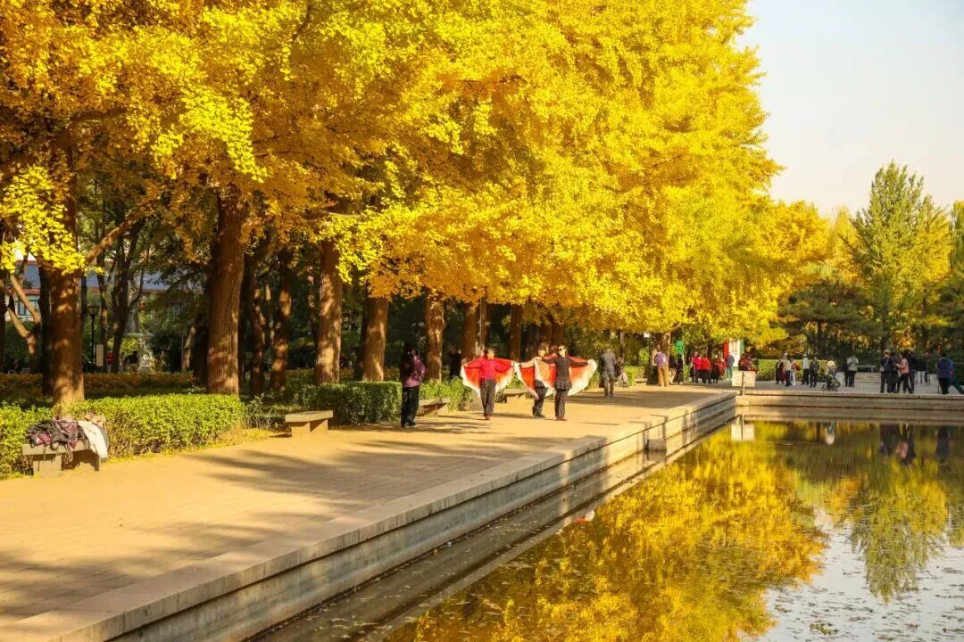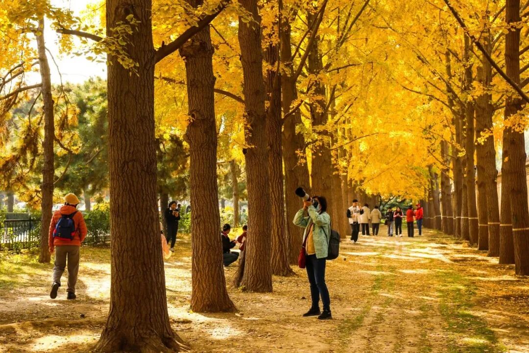 ✅ 穿搭建议:白色、红色、蓝色衣物与金黄银杏最配。