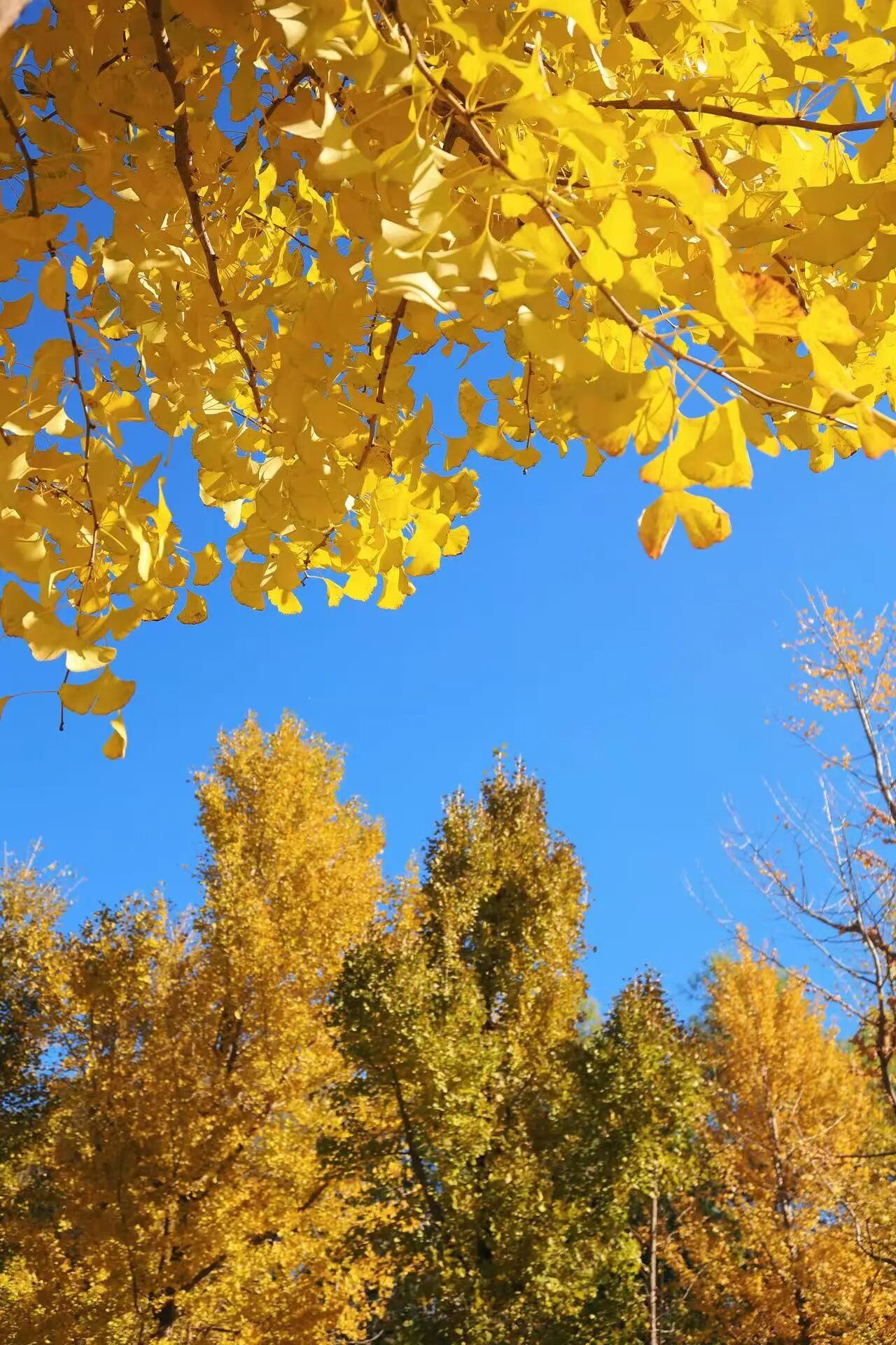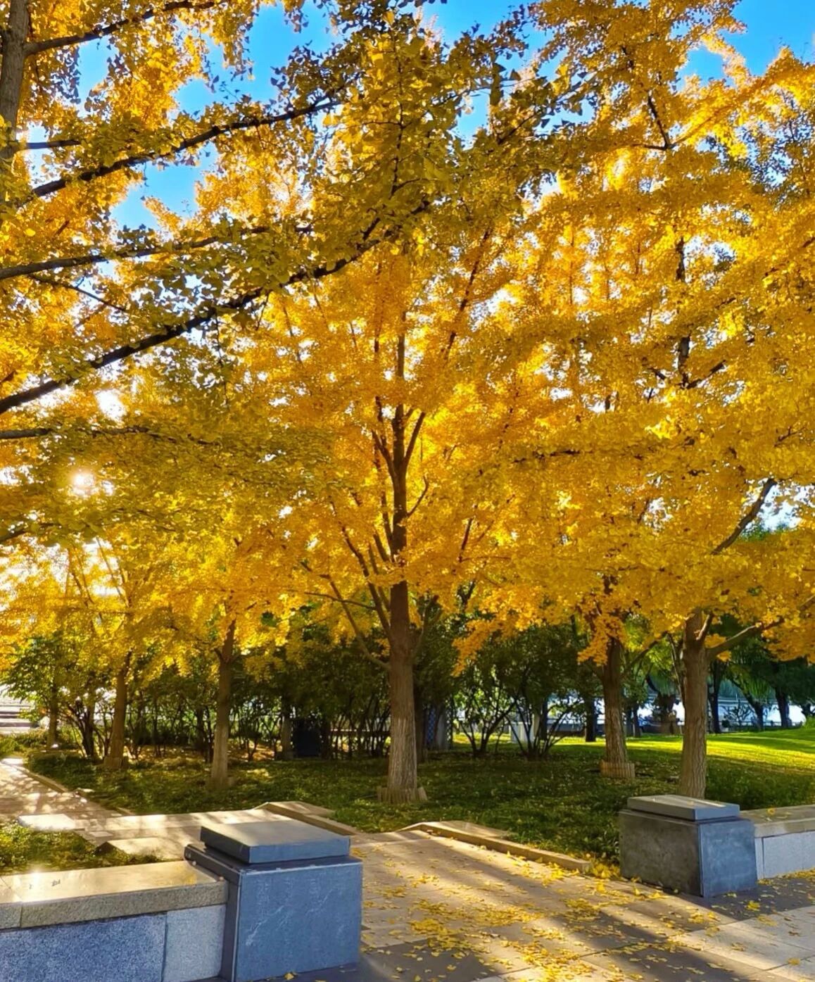 一整片银杏林披上金色铠甲