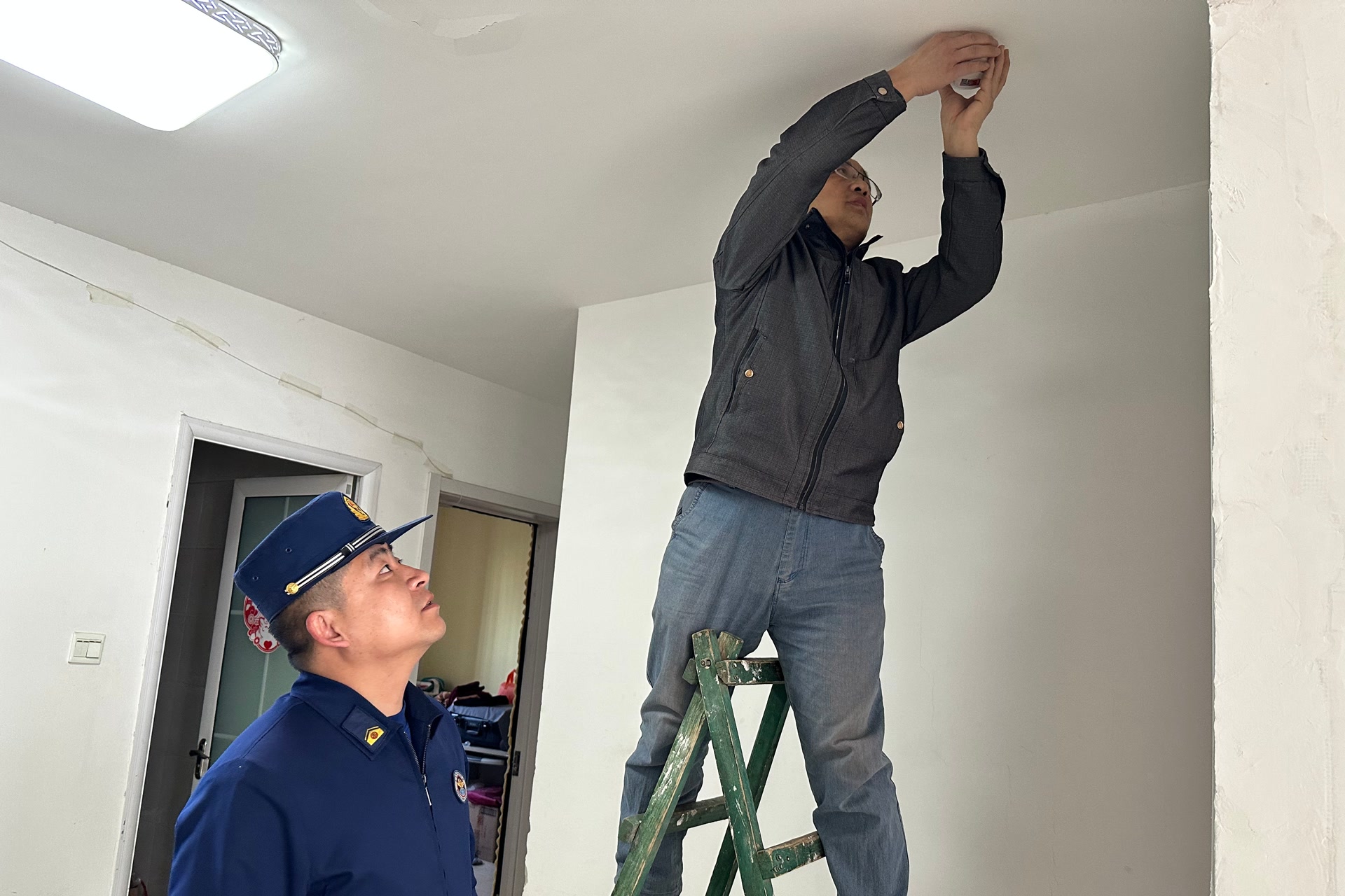 在鸿博家园第一社区的陈大妈家中,工作人员拎着烟感报警器设备和逃生应急包上门服务,现场完成安装与联网调试。“这个小盒子可是个‘灵敏鼻子’,一旦闻到浓烟味,它就会自动报警,不仅会在您家中发出响亮的警报声,后台和社区网格员的手机也会同时收到提醒。”工作人员一边安装一边向陈大妈解释。安装完设备,工作人员打开应急包,手把手教她使用灭火器、灭火毯等自救逃生器材。临走前,他们还帮老人清理了堆放在阳台多年的旧纸箱、塑料花盆等易燃物品。“现在有了这个‘安全小卫士’,心里踏实多了。”陈大妈说。
