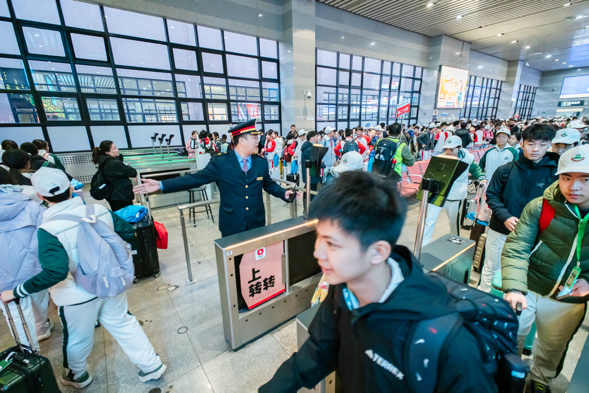 为保障师生们研学之旅的启程安全有序,北京西站开辟专用进站通道与安检口,将第5候车室设置为学生专属候车区,还有专人从停车场起全程引导。列车配备多样化餐食与常备药品,广播与广告屏同步融入研学主题内容,扩展旅途学习体验。
