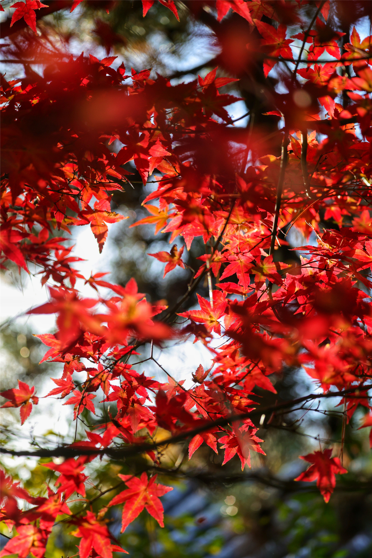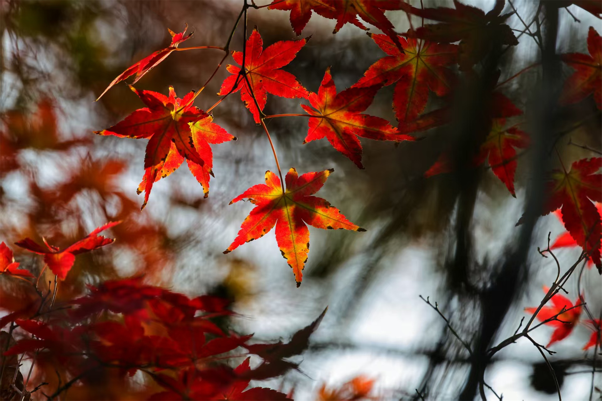 银杏以灿烂金晖暖透斑驳砖墙,枫叶晕开朱红橙黄,恰似打翻的调色盘。