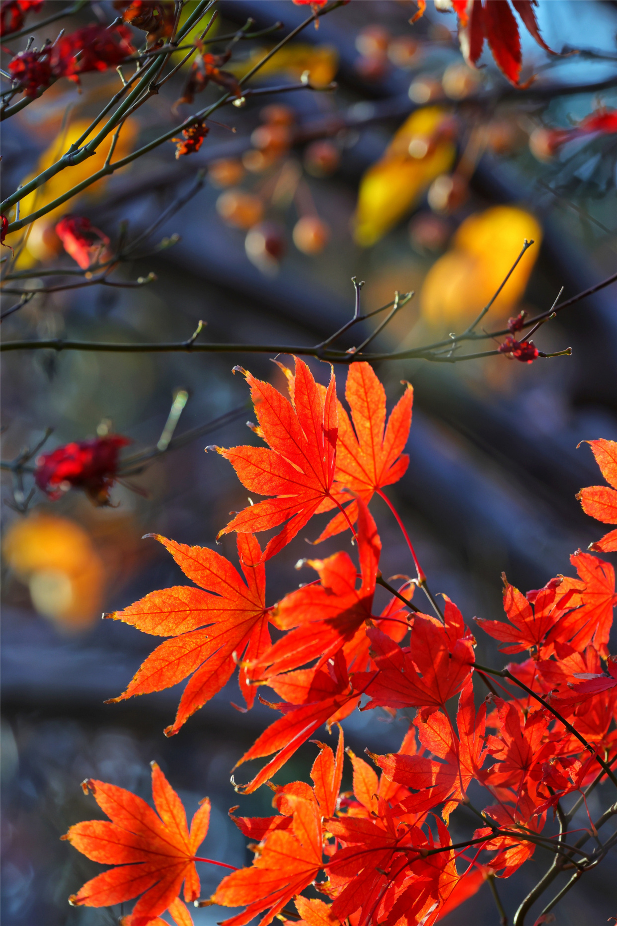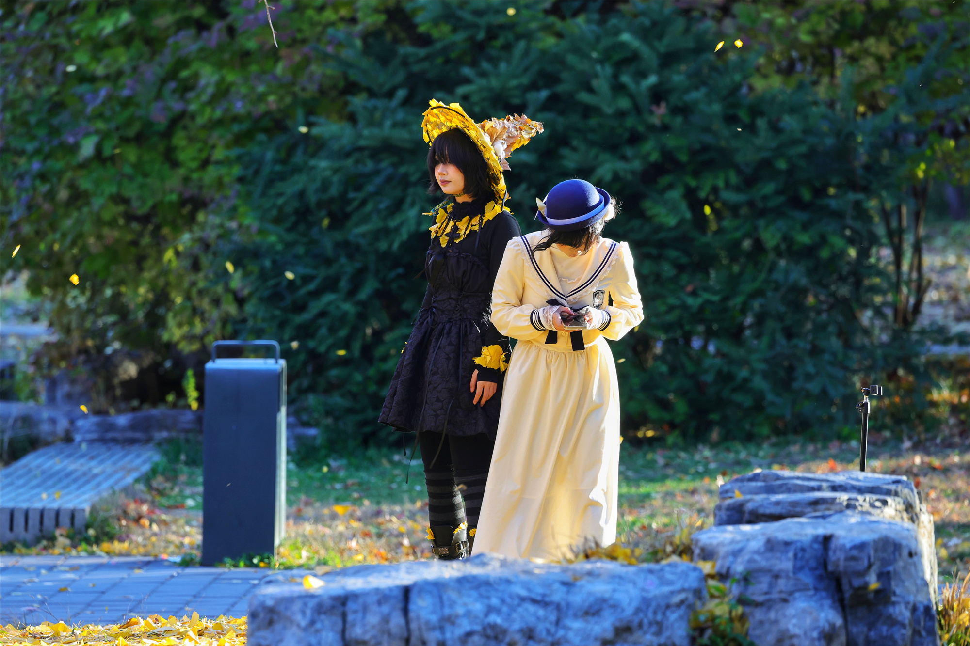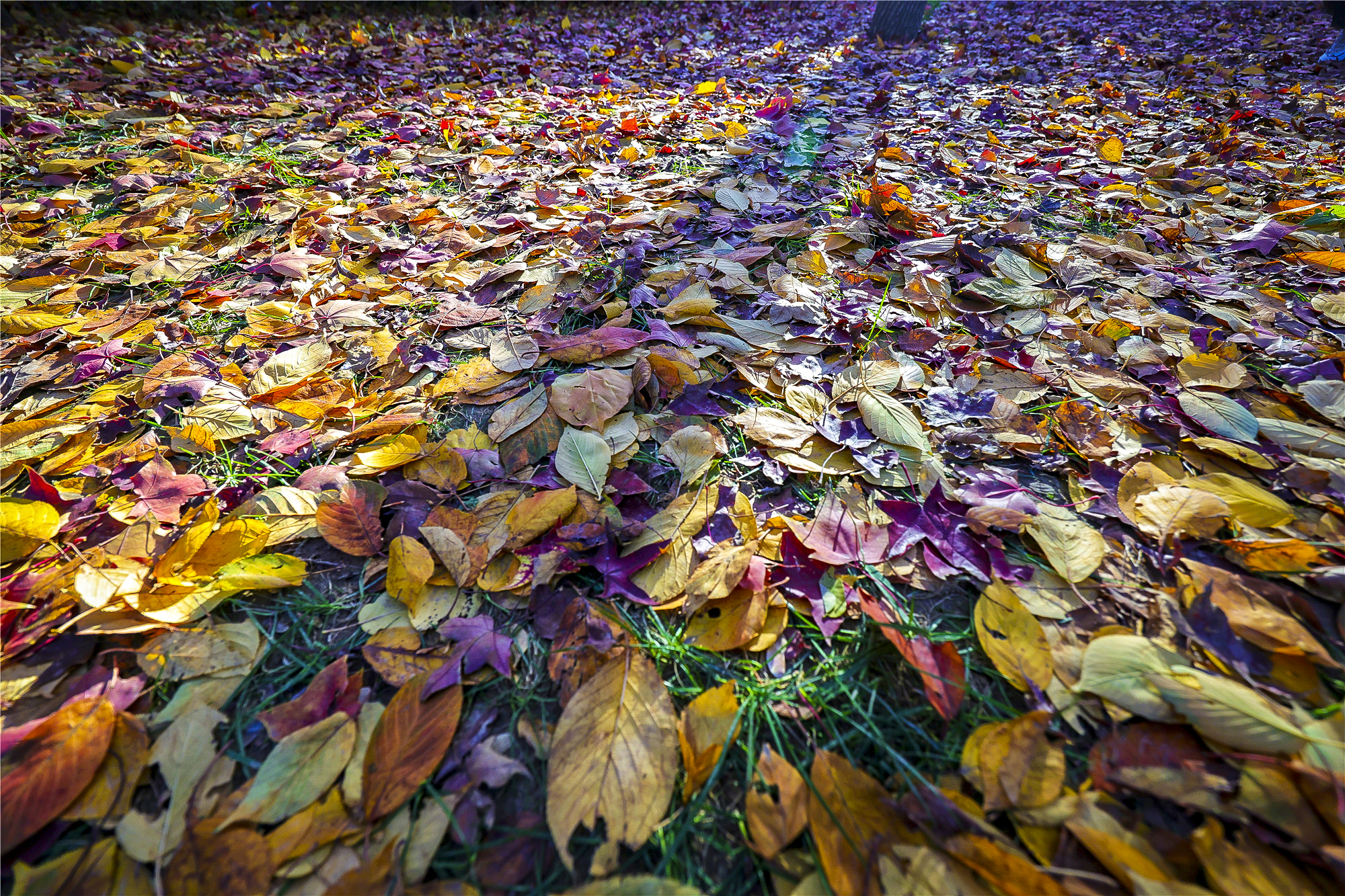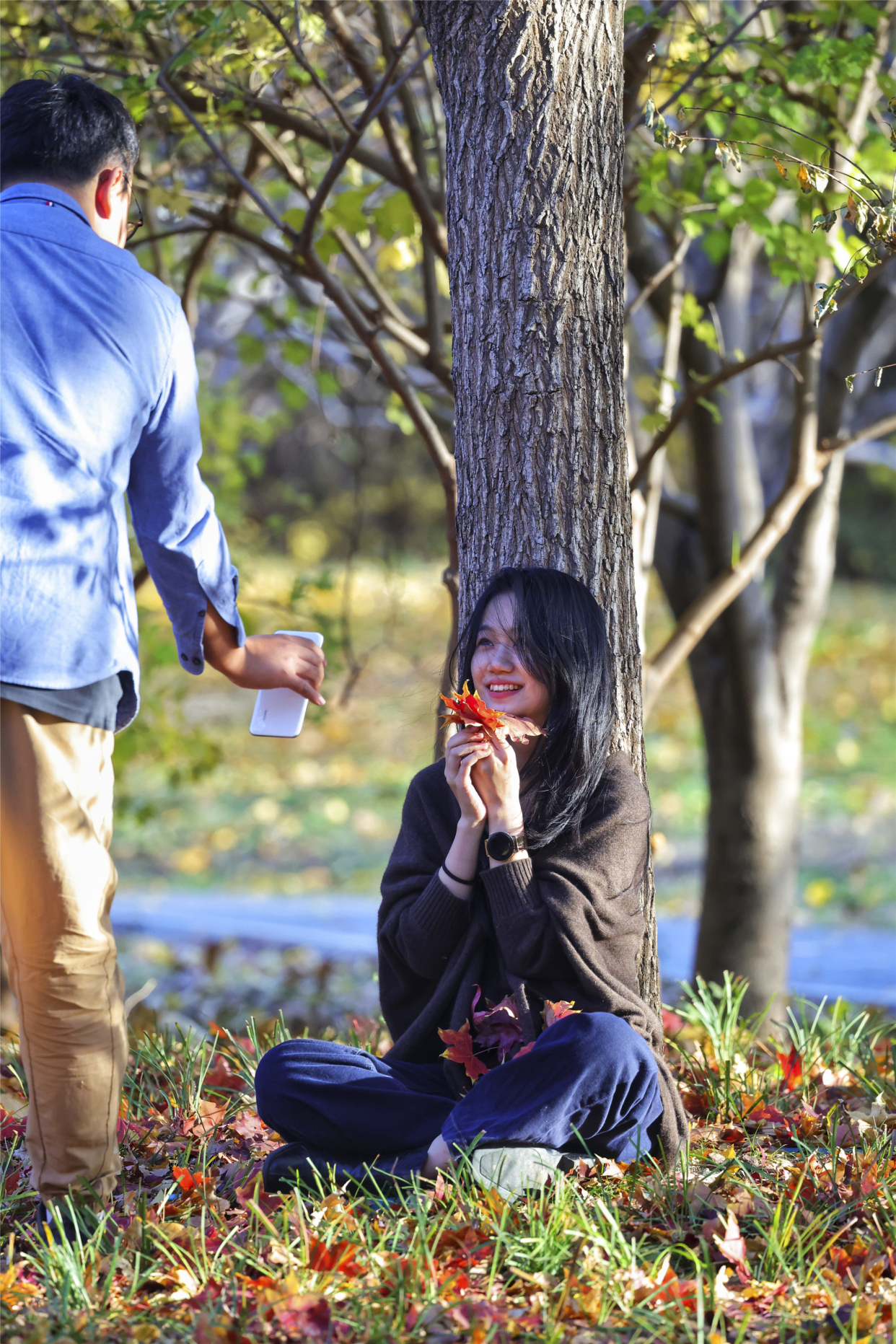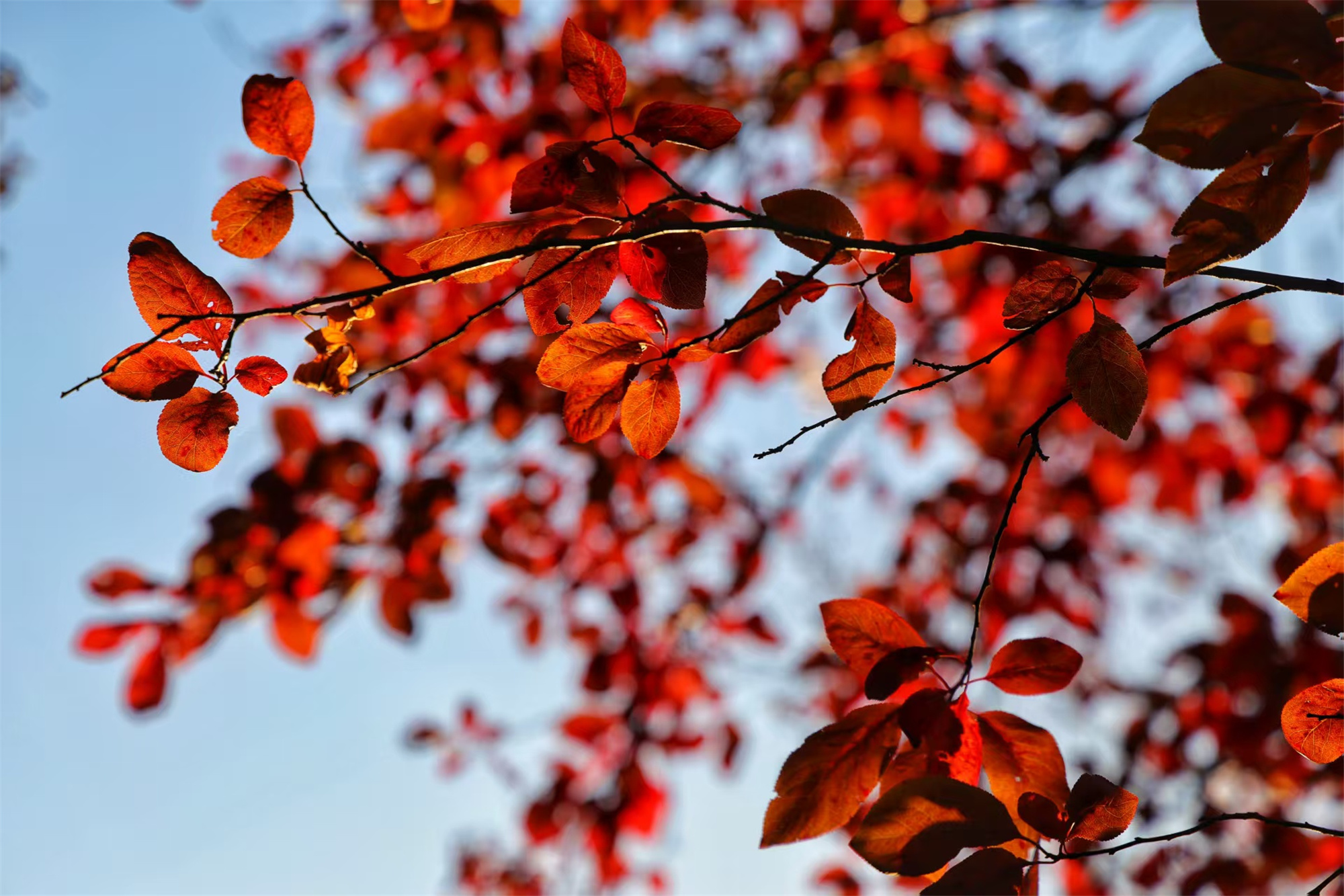 叶落满地最是动人——银杏铺就的“金毯”从墙根蔓延,踩上去沙沙作响,枫叶与红栌点缀其间,共同织就斑斓锦缎。