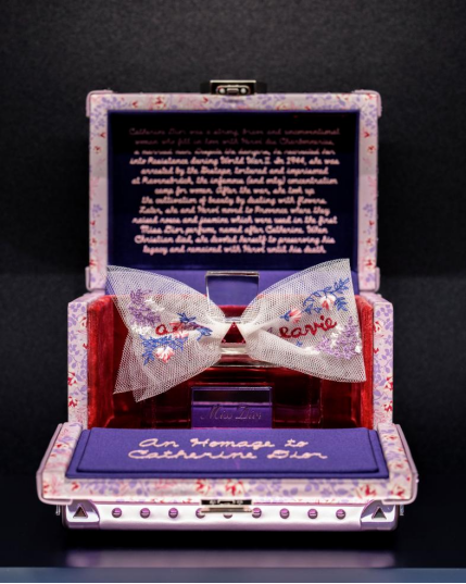 另一件备受瞩目的展品是美国艺术家朱迪·芝加哥(JUDY CHICAGO)为迪奥小姐香水创作的高订香氛收藏箱。这件艺术臻品以繁花图案与春日色彩装饰箱体,倾情致敬迪奥先生的妹妹——迪奥小姐香水的永恒缪斯卡特琳娜·迪奥(CATHERINE DIOR)。艺术家以其标志性的艺术语言,将她的非凡人生融入创作,不仅是一件美轮美奂的艺术品,更是一曲对女性力量与生命意志的颂歌。