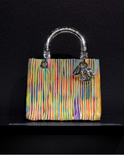 移步至本次特设的“LVMH迷你博物馆”,这里集中呈现了集团旗下品牌的经典佳作与创新匠艺。迪奥于此呈献了两件凝聚艺术巧思的代表作品,展现品牌在经典传承与艺术创新之间的深度对话。首件展品为中国艺术家鞠婷专为“DIOR LADY ART”艺术家合作项目十周年特别打造的LADY DIOR手袋。作为2025年度“DIOR LADY ART #10”艺术家限量合作系列的唯一中国艺术家作品,该创作灵感源自动态艺术的表现原理,通过起伏波动的面板构成,营造出强烈的律动效果与视觉错觉。艺术家以其独特的艺术语言,将迪奥一如既往的精致优雅与创新理念巧妙融合,令这款经典手袋化身为一件可携带的当代艺术珍品。