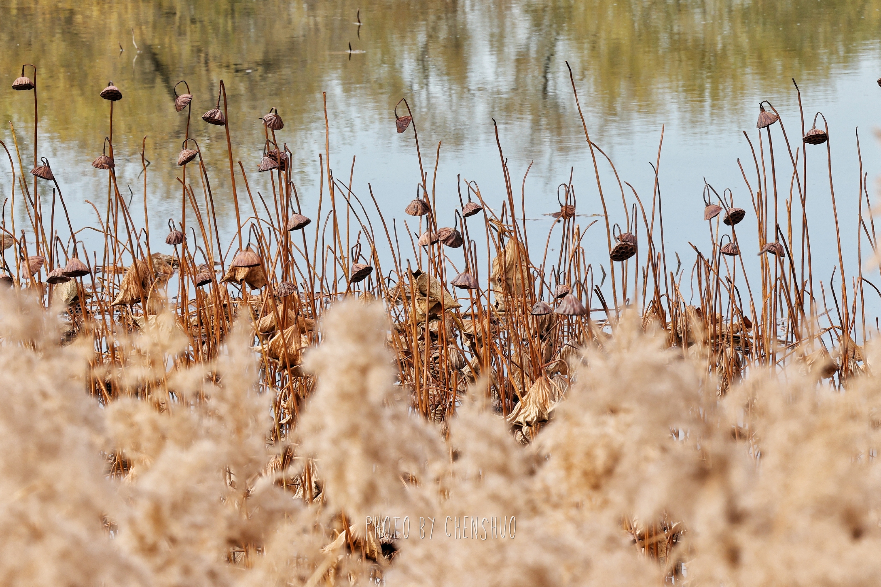 荷塘已无盛夏的繁华,只剩下芦苇、残荷在水中静静伫立,低声诉说着夏天的故事。