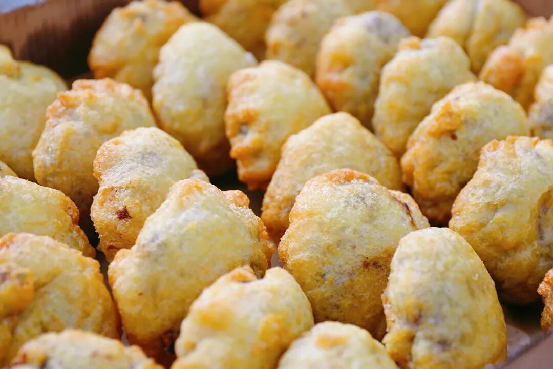 刚出炉的炸糕金黄酥脆。