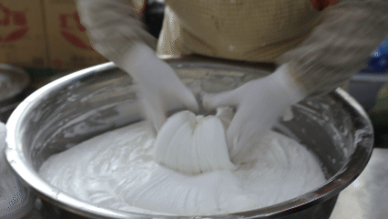 这家去年5月开业的新店,如今平常日销量约800个炸糕,周末更是飙升至约1200个,成为名副其实的“人气店铺”。