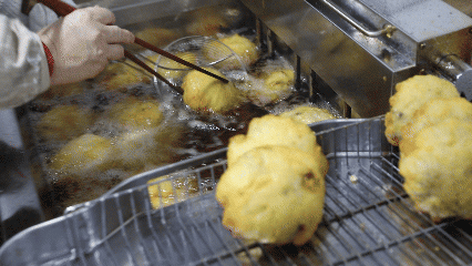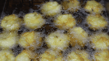 炸糕下锅时