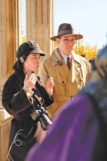 蓟门君在留学路上为听众讲解天桥片区的历史建筑。高睿谦摄
