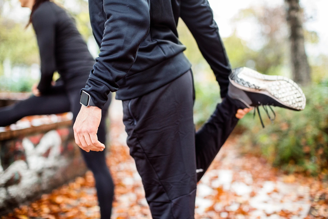 秋冬季早晚温差较大,运动前检查保暖衣物、运动配件、鞋子及运动器材是否正常,户外运动时要注意衣物轻软宽松,不宜过紧。热身后,身体微微出汗,再脱去一些厚衣服。