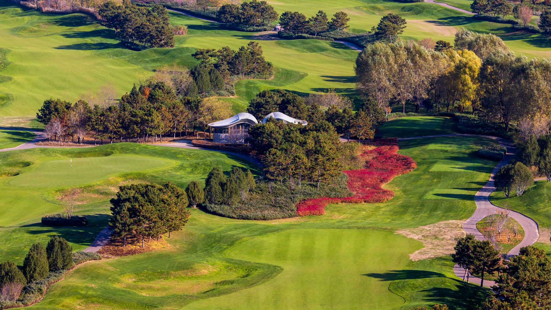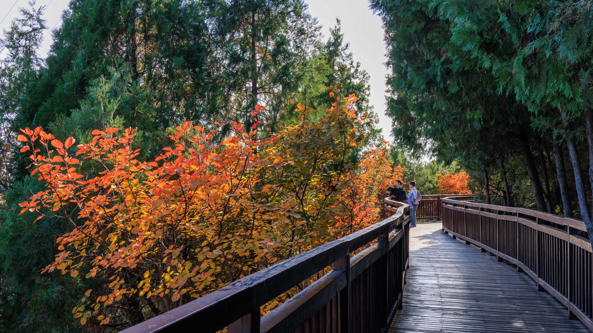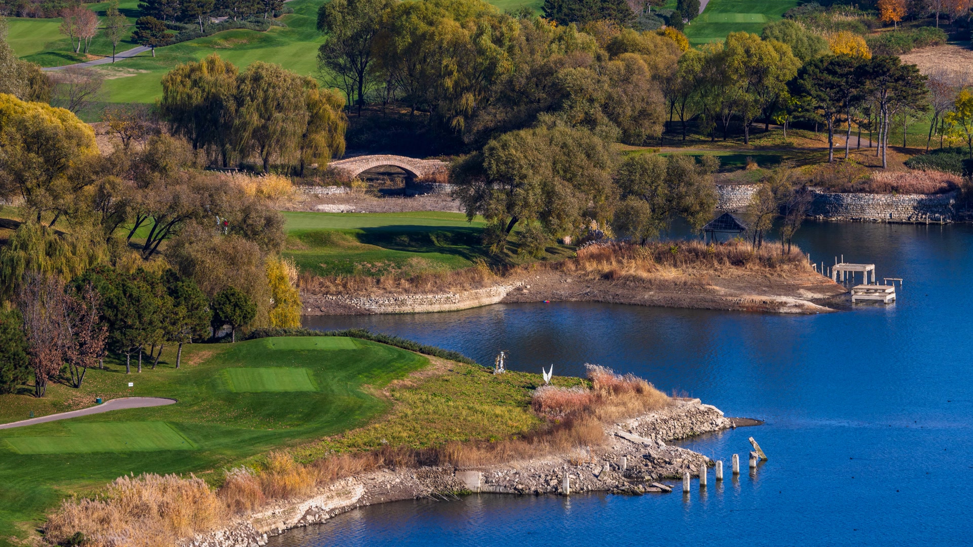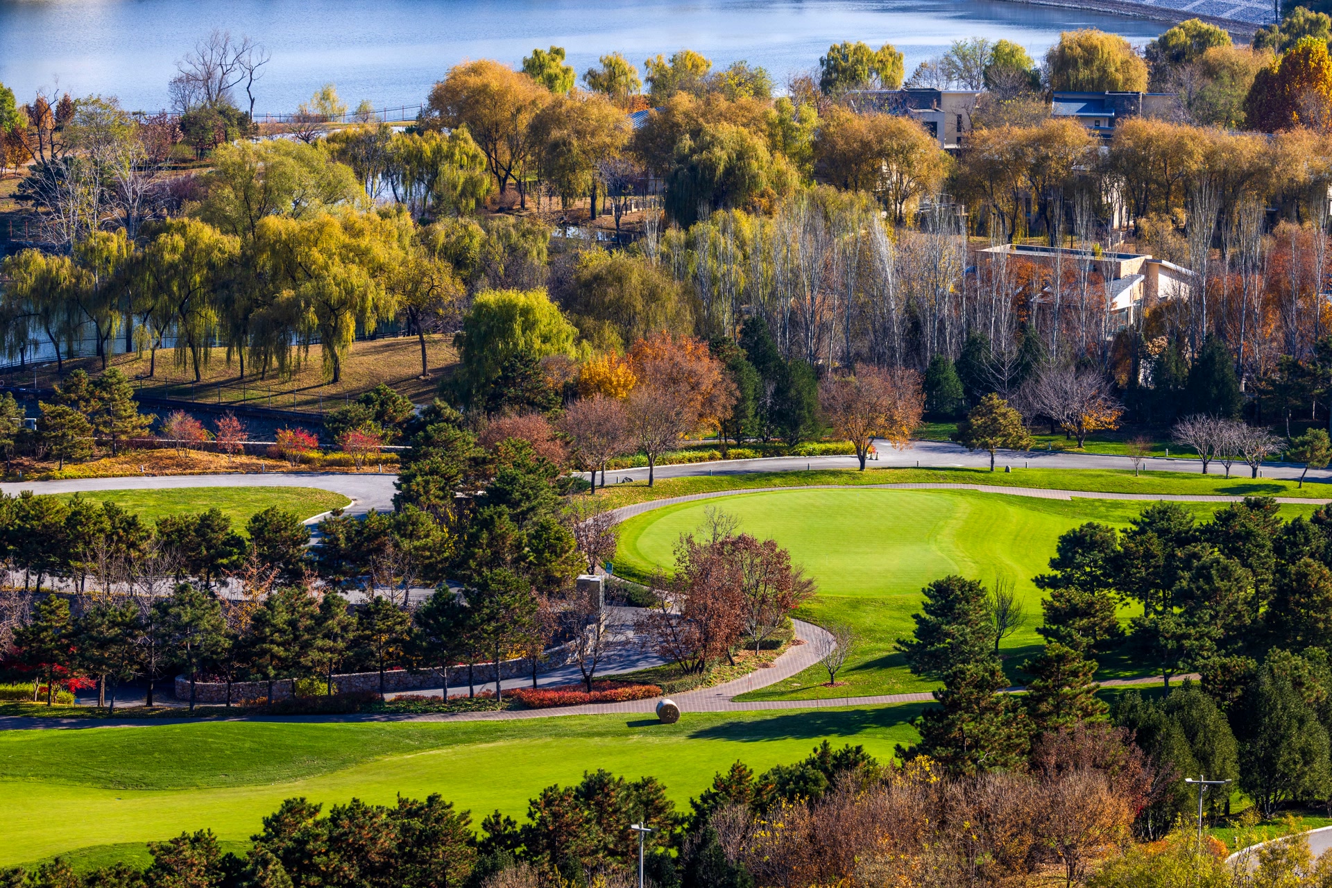 11月10日,雁栖湖第五步道如油画,制高点处湖光山色、古塔、酒店交融,自然与人文共绘视觉盛宴。