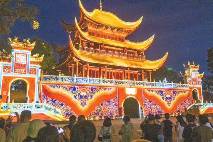 湖南省岳阳市岳阳楼景区上演《今上岳阳楼》实景演出。吴永华摄
