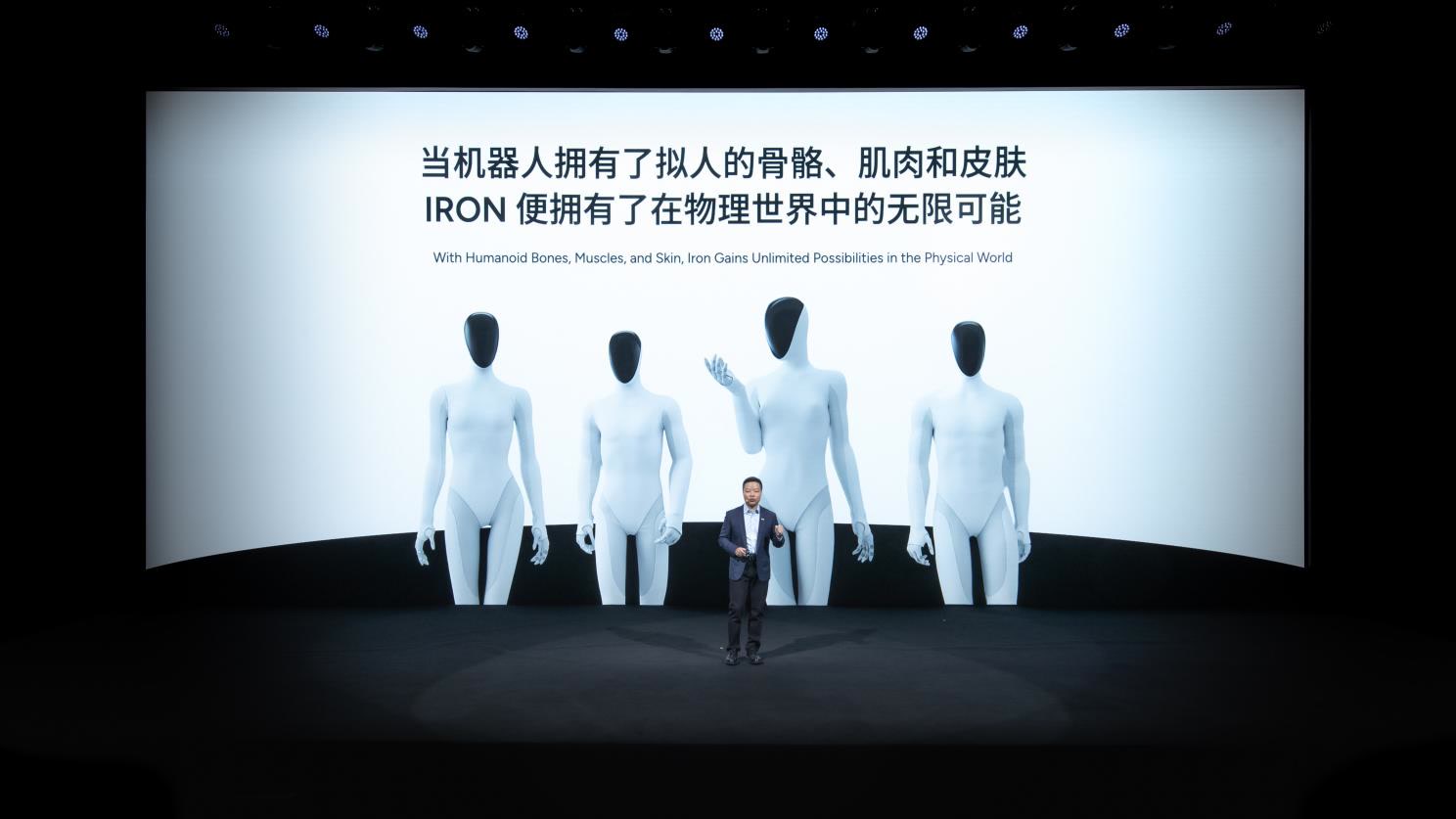在发布会现场,小鹏全新一代IRON亮相,基于“极致拟人”的设计原则,全身拥有82个自由度,动作自然流畅、灵活自如,可实现如“猫步行走”的高难度拟人动作。新IRON搭载3颗图灵AI芯片,有效算力2250TOPS,同时首发搭载小鹏第一代物理世界大模型。何小鹏表示:“2026年年底,小鹏目标实现规模量产高阶人形机器人。”