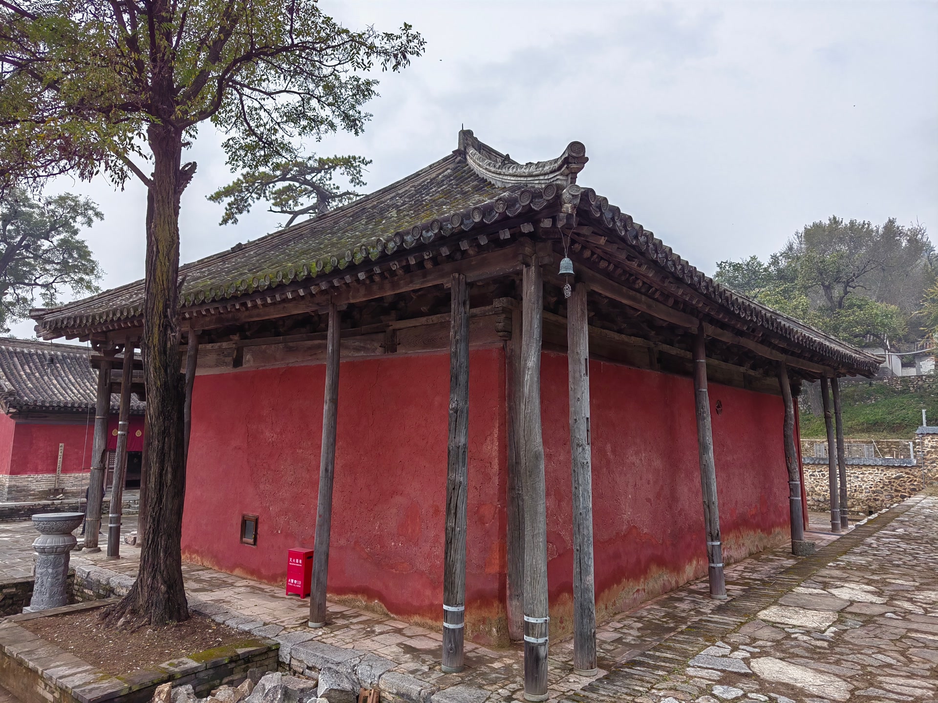 而后,这座深山古刹多次大修,并且留下了修缮印记。比如,唐代的绳纹砖、辽代的沟纹砖、元代的叉手、明代的彩绘、清代挑檐下的木柱等。作为年代久远、格局完整的木结构建筑,灵岳寺堪称中国古代建筑的“活化石”。