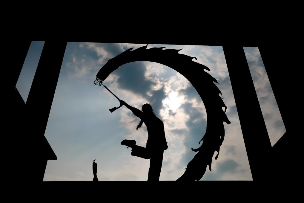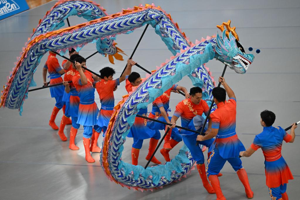11月10日,香港队在广东省佛山市岭南明珠体育馆进行舞龙自选项目的适应场地训练。新华社记者 邹竞一 摄