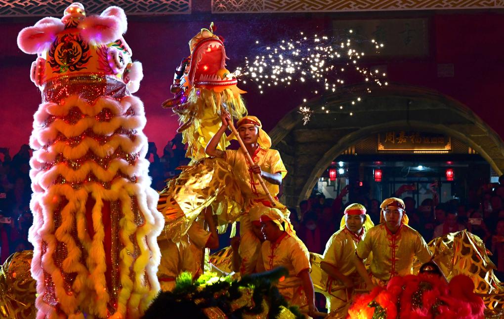 2025年2月6日,人们在云南省大理白族自治州南涧县龙灯会上表演舞狮。新华社记者 陈欣波 摄