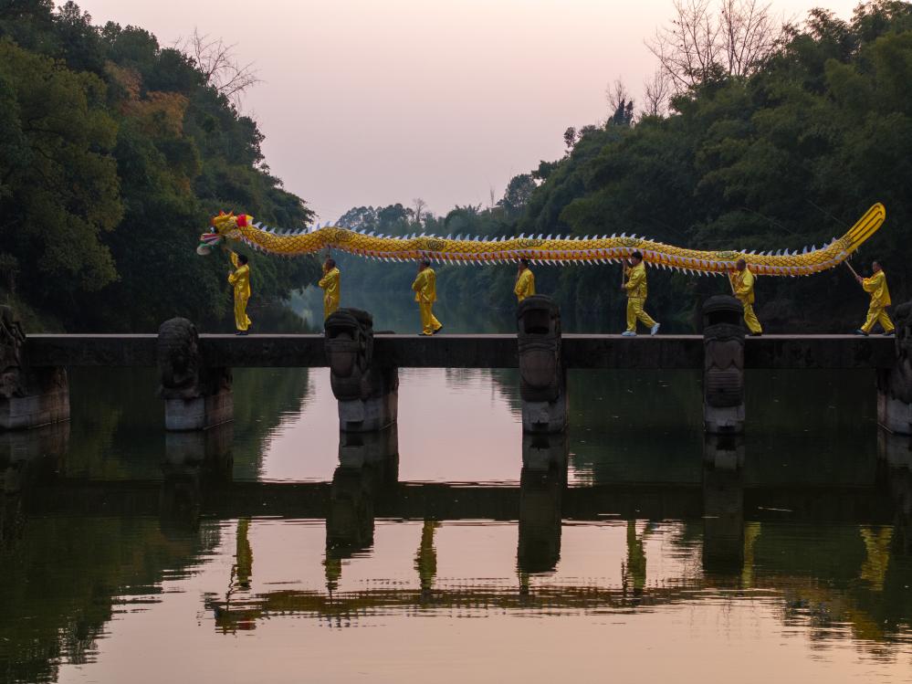 2025年2月28日,在四川省泸州市泸县龙脑桥景区,一支雨坛彩龙队进行舞龙表演。新华社记者 江宏景 摄
