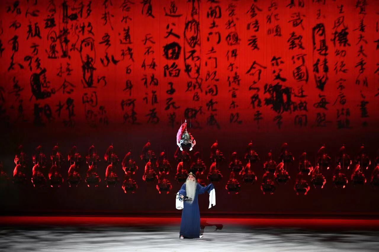 “相比传统戏曲,我的作品可能叙事节奏更快,剧情设计更复杂,人物形象更立体,视觉呈现更丰富多元。”李卓群说。比如,不久前首演的京剧《颜真卿》,在颜真卿广为人知的书法家形象之外宕开一笔,还原他作为政治家、军事家的襟抱与孤勇。当颜真卿道来颜氏一门三十余口被害的惨烈往事时,一抹宛若鲜血的猩红横亘舞台,几十枚头盔高挂半空,似头颅高悬,强烈的视觉冲击力与倚赖一桌二椅的传统戏曲迥异,把现场悲壮的气氛推向一个令人战栗的顶点。