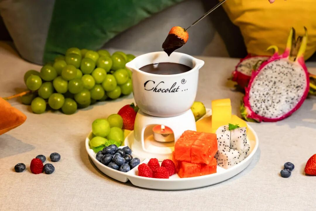 香啤坊在初冬为食客们准备了别具一格的热巧克力火锅。丝滑浓郁的热巧克力酱,搭配新鲜的水果,成就一道沉浸式的暖冬甜品。