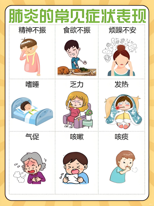 新生儿和婴儿肺炎可能表现为呕吐、烦躁、嗜睡、呼吸及进食困难,也可能没有明显感染症状。