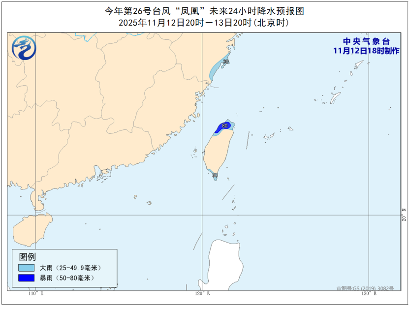 中央气象台11月12日18时继续发布台风蓝色预警: