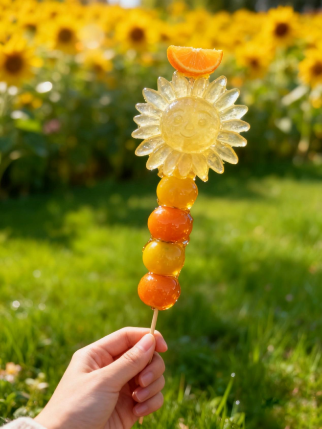金葵花海中,这串糖葫芦把阳光都裹进糖衣里,一口满是秋日亦庄的暖。