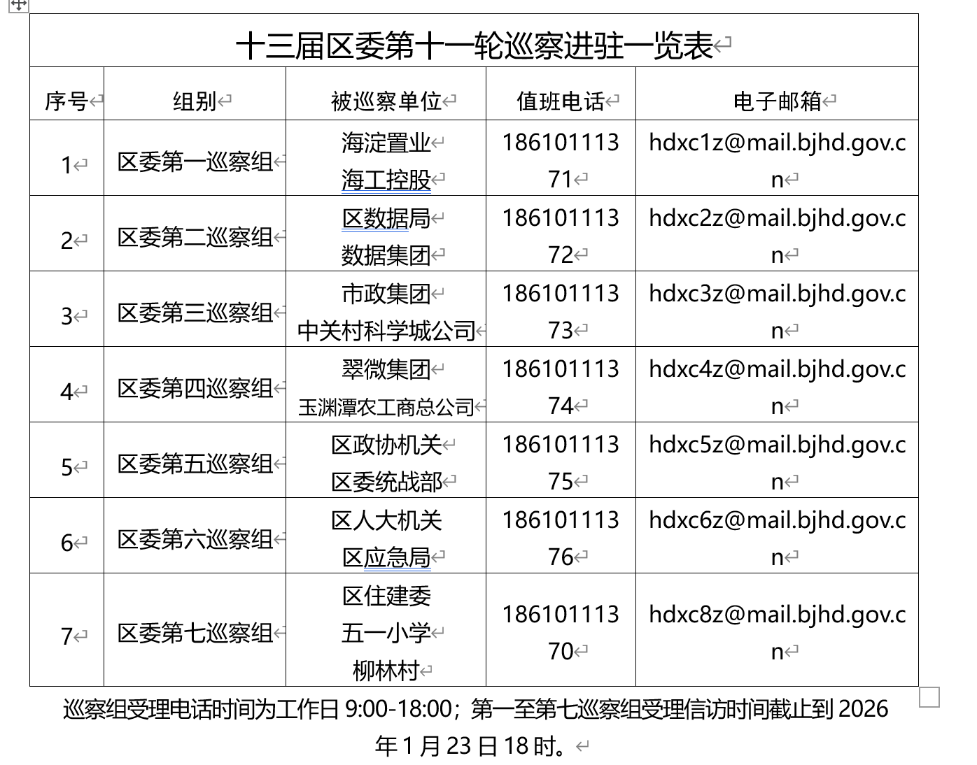根据区委统一部署,截至11月11日,十三届海淀区委第十一轮巡察的7个巡察组完成15家被巡察单位的进驻。至此,十三届区委第十一轮巡察工作全面展开。